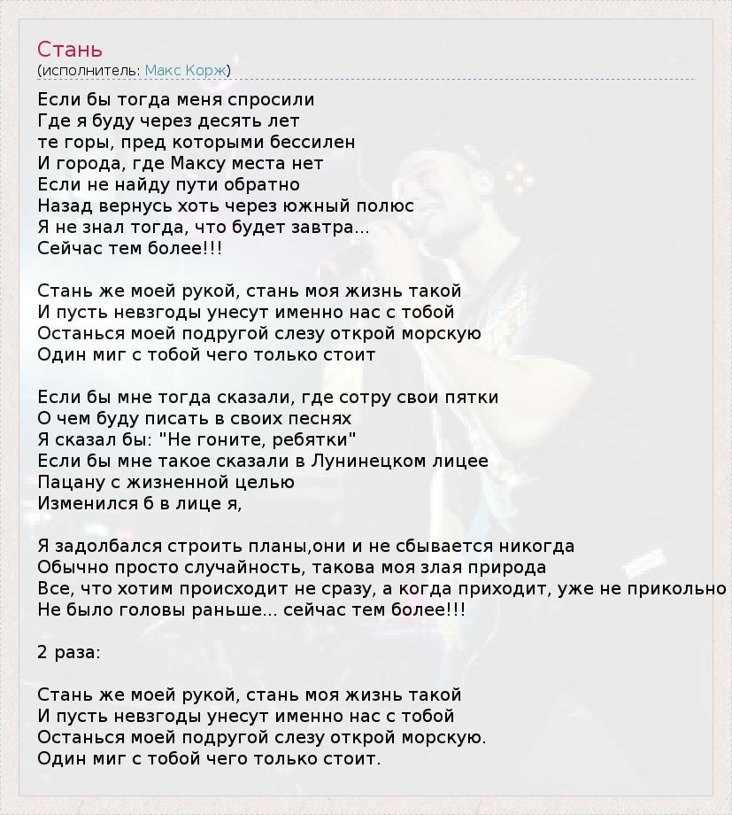 Макс корж стань слова