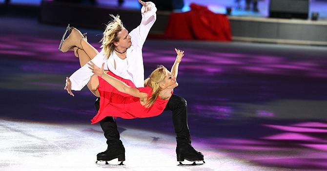 Актриса Лиза Арзамасова и двукратный чемпион мира по фигурному катанию Максим Ставиский. Выступление в шоу "Лёд и пламень". Белый Орел "Как упоительны в России вечера"