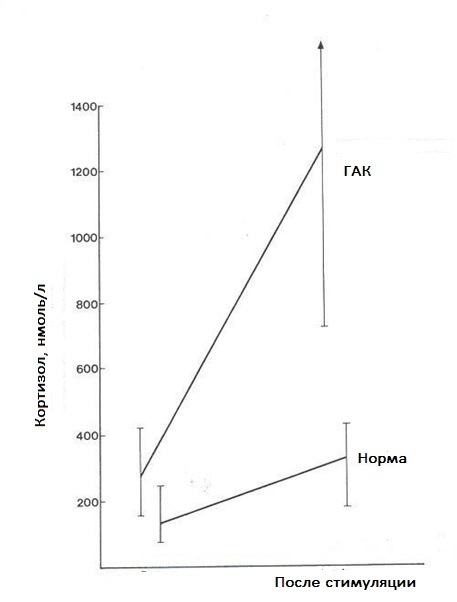 Проба с дексаметазоном . Для подтверждения наличия ВГКН используют также супрессивную пробу с дексаметазоном (малая проба), которая описана далее . Снижение концентрации ДГЭАС и прегнантриола на фоне проведения пробы более чем на 50% подтверждает диагноз .