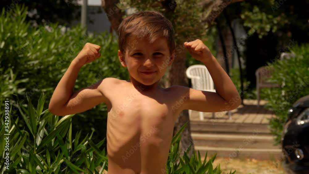 Мальчик показывает пресс