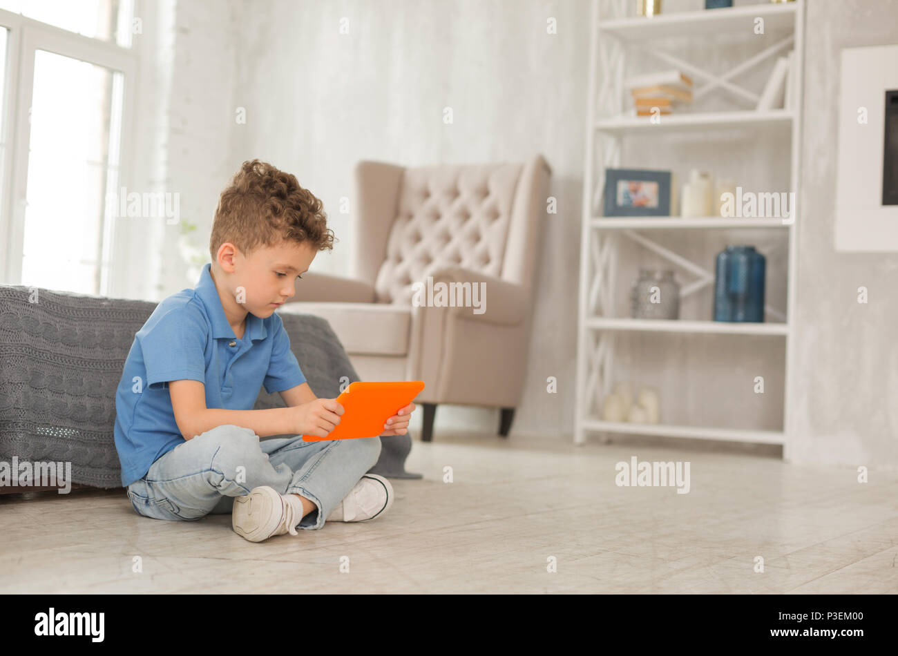 Мальчик сидя на полу