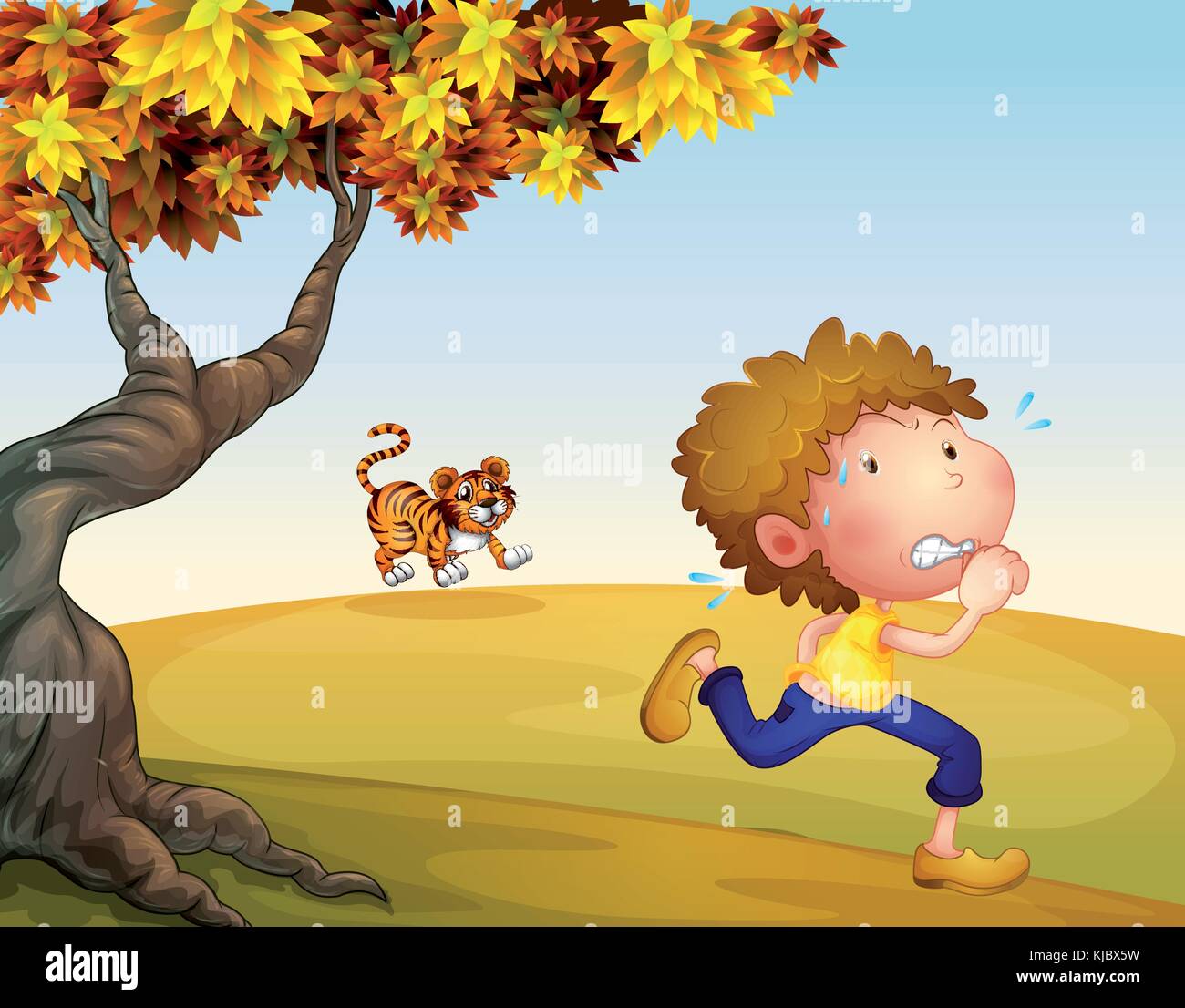 Мальчик убегает от собак