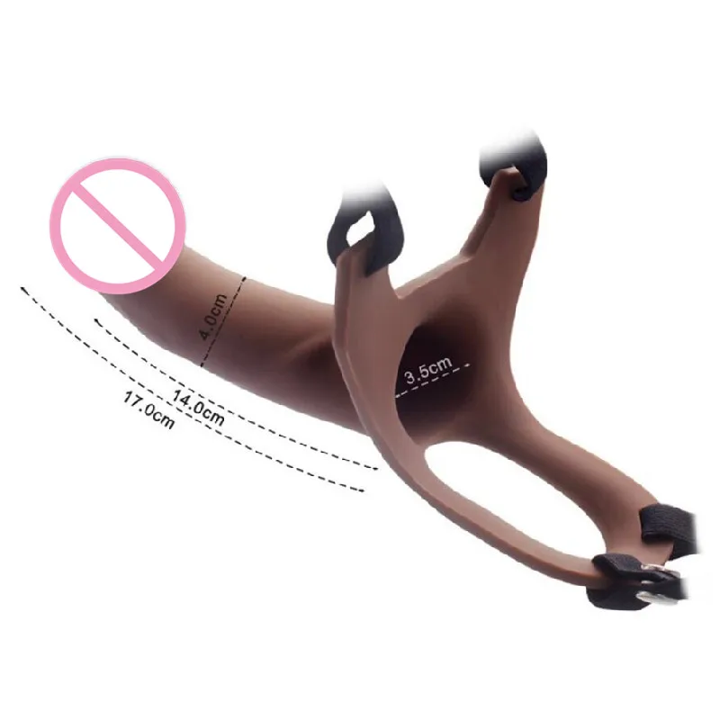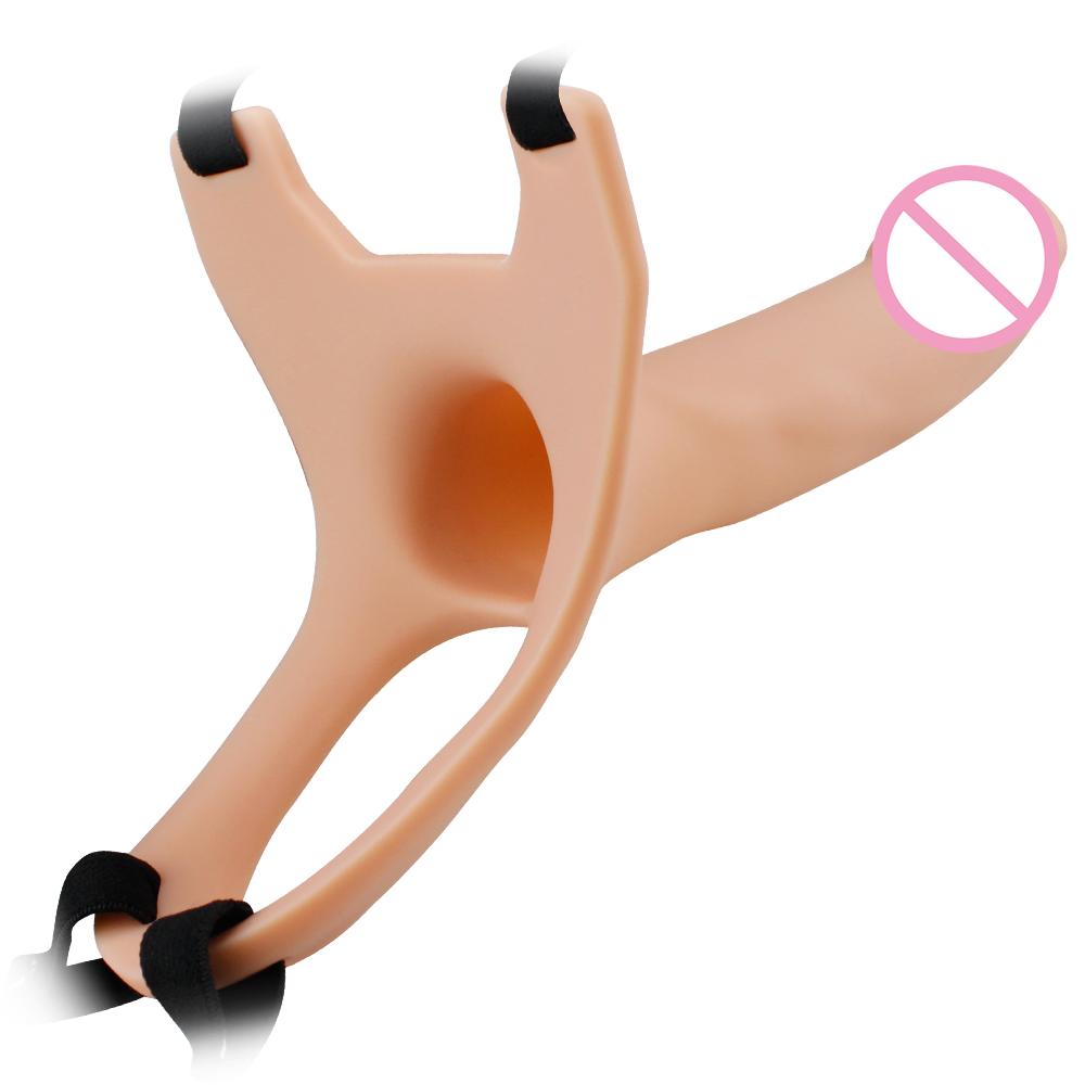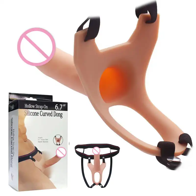 Hollow strap on dildos are sexual enhancers made for men with erectile dysfunction . They are rigid and do not require an erection to work . With that being said, it's important to note that if you can become fully erect, there won't be enough space inside for your erect penis to fit! Looking for more information?