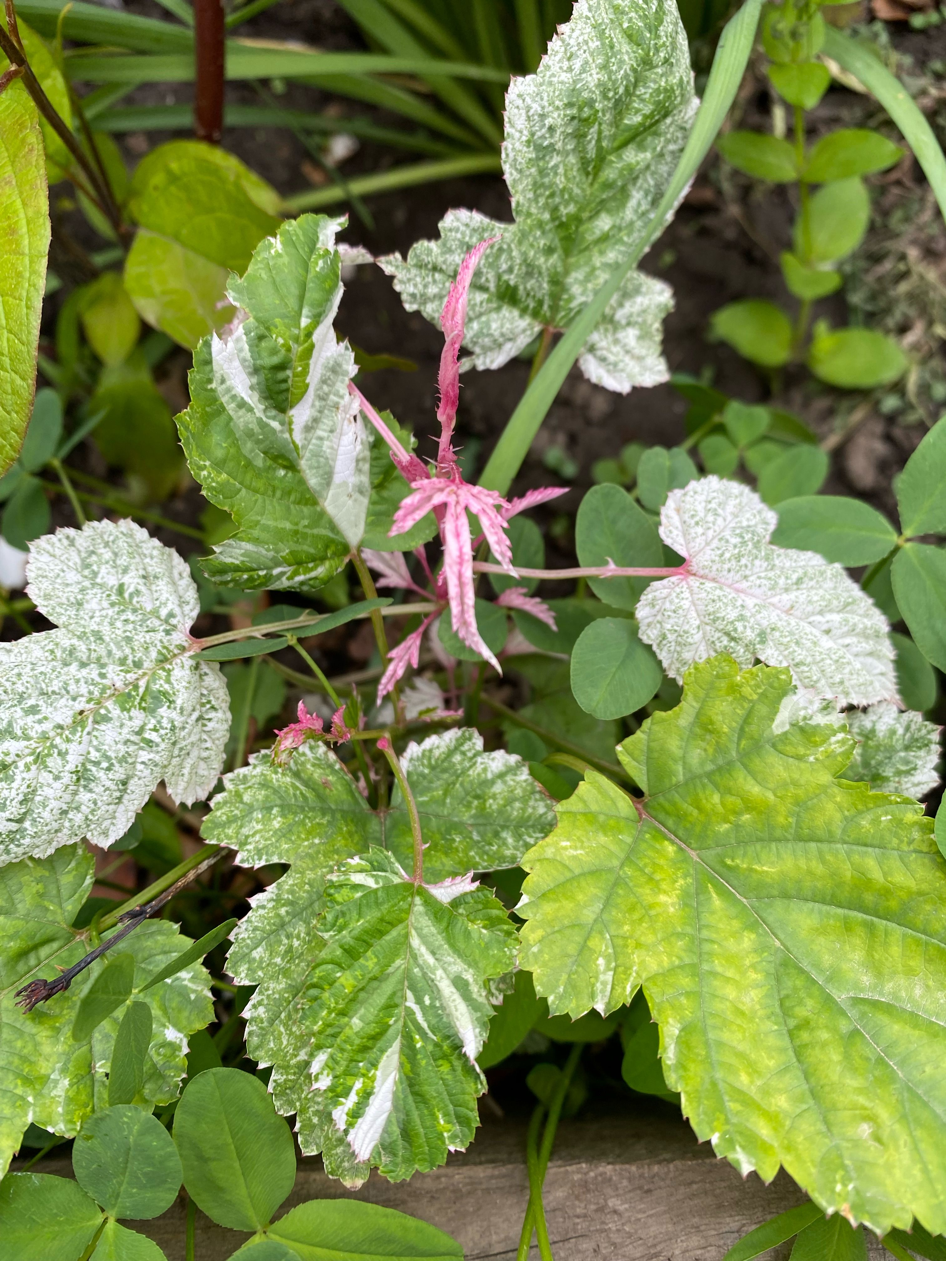 Малина красные листья