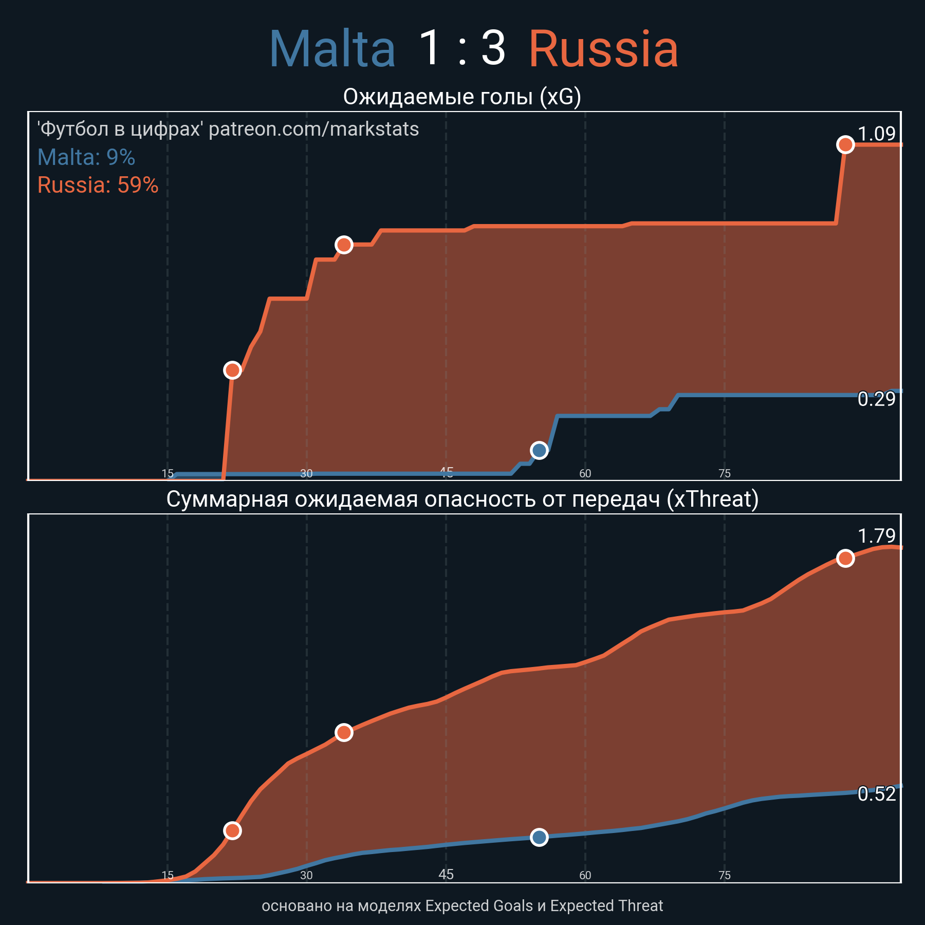 Футбол в цифрахСтатистика матча Malta - Russia