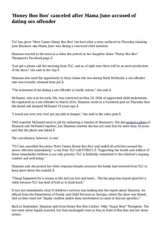 June was dating McDaniel at the same time he molested the child . We will not identify the child but it's someone with whom June has contact . McDaniel served 10 years and was released this past . . .
