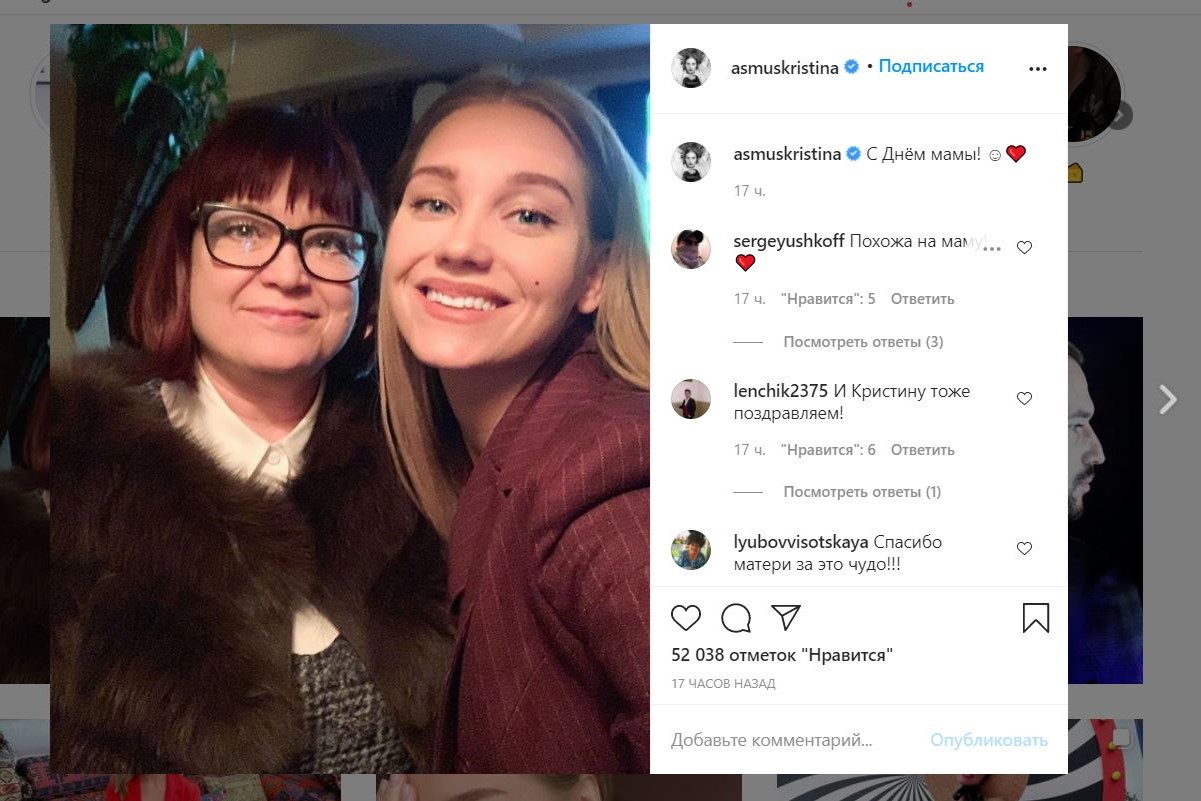 Фото мамы Пименовой ниже . Вот как раз этот фотосет, который породила слухи, о том, что мама Кристины — бывшая модель .