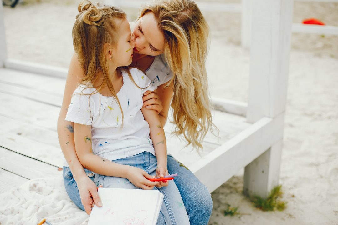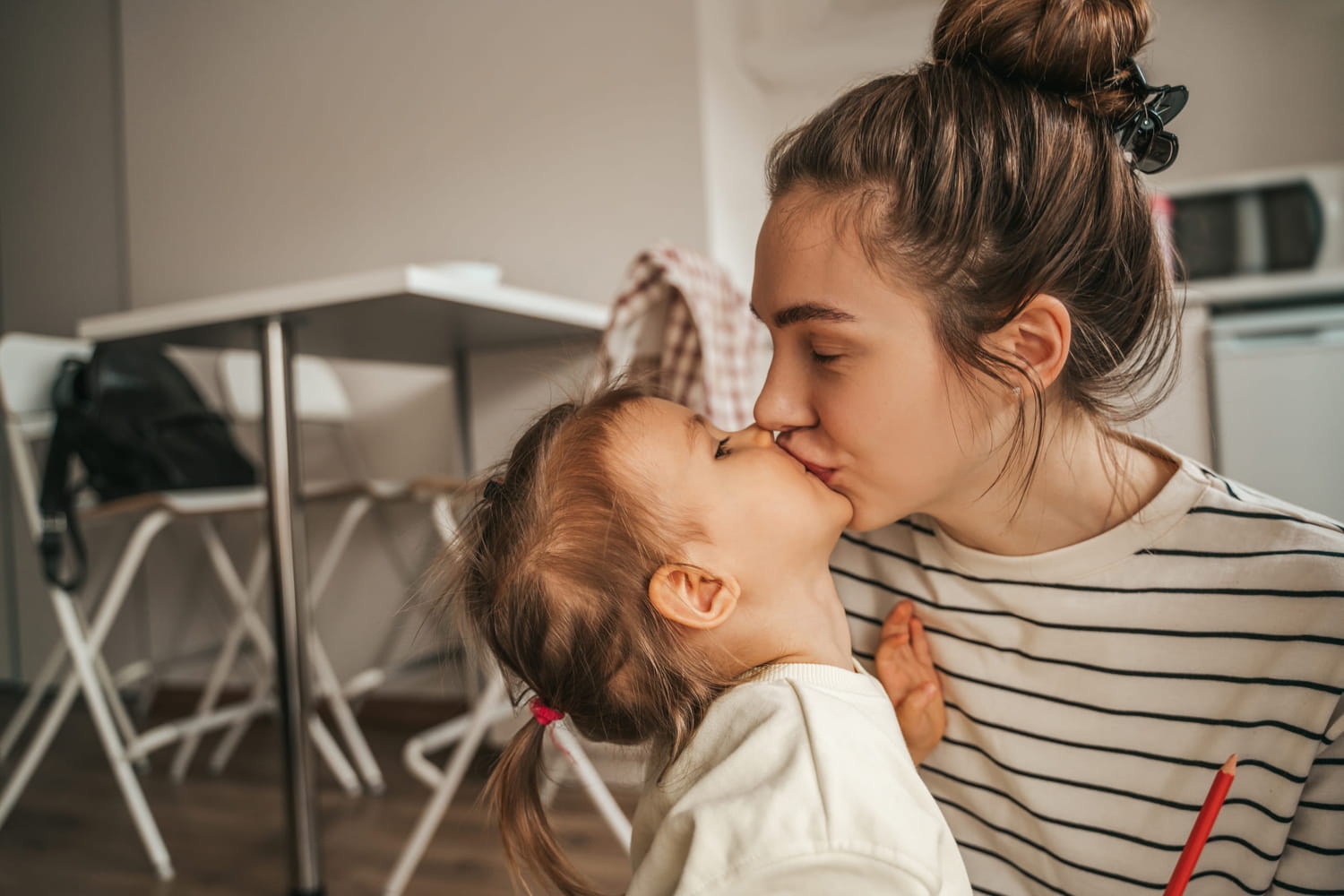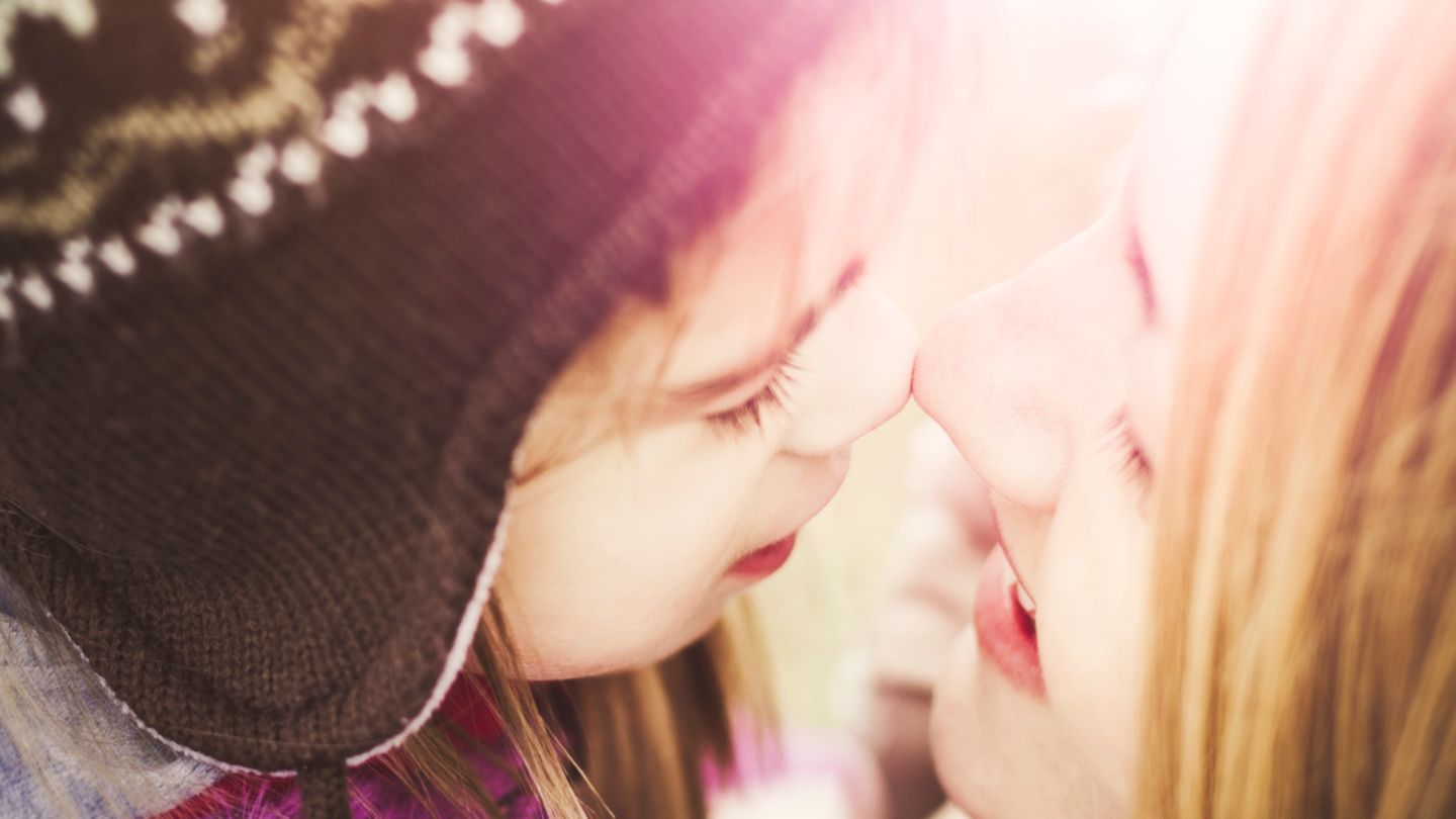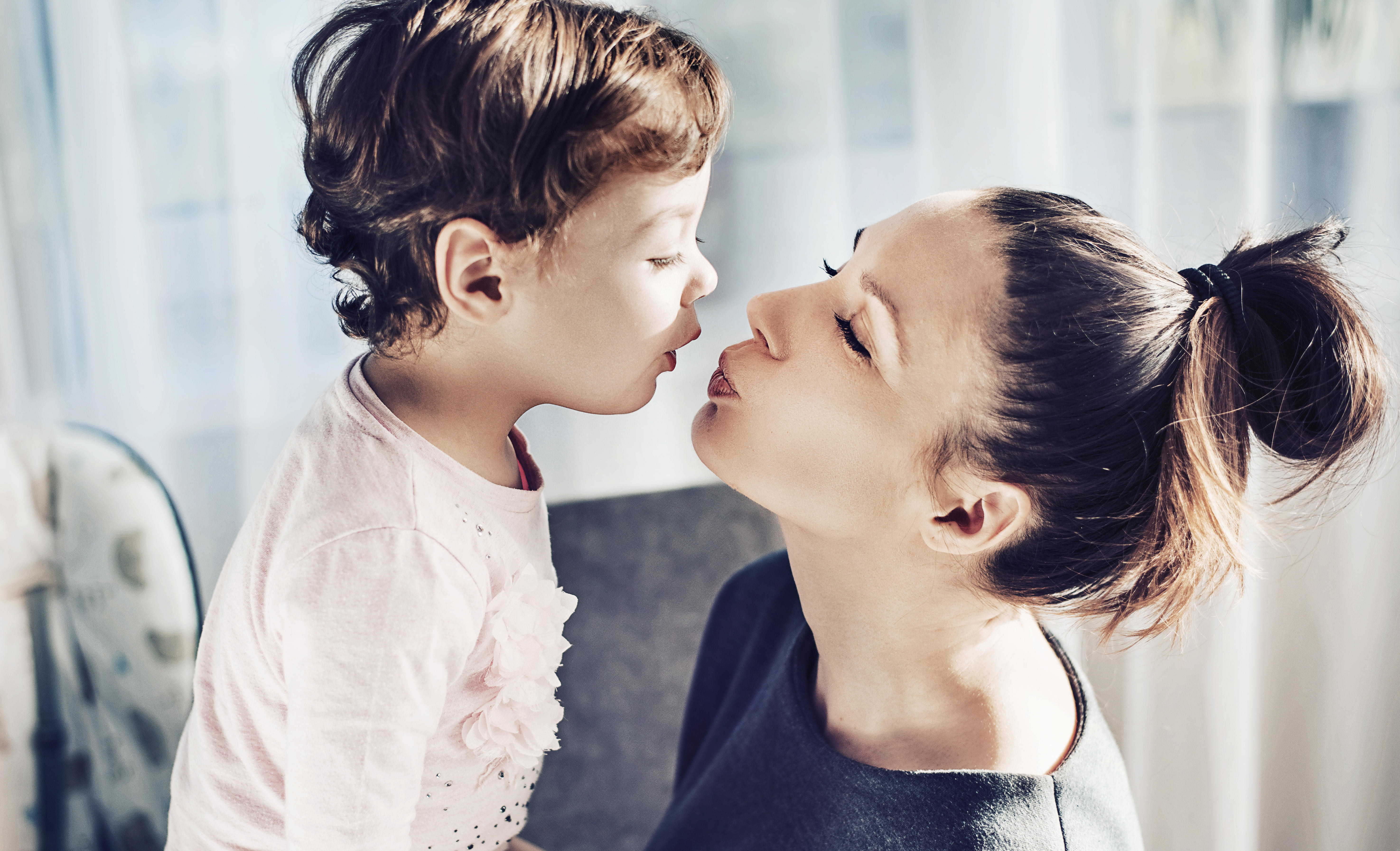 Мама целует дочь в губы