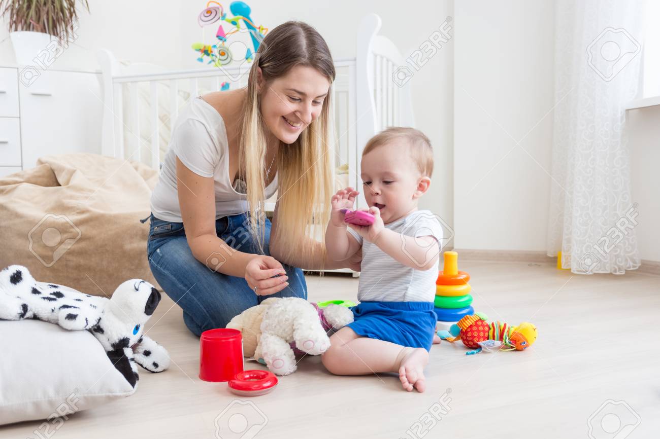 Мама и малыш играют 83 фотографий