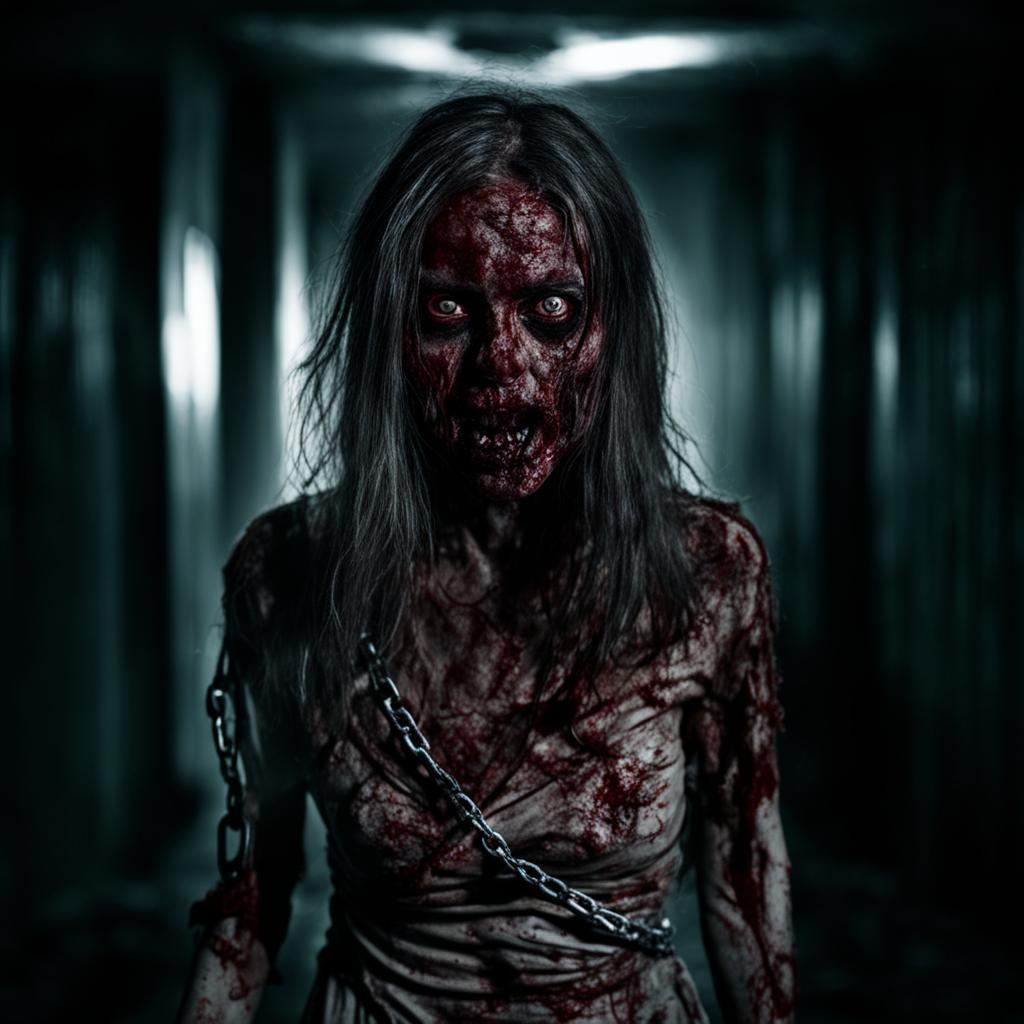 Она стояла в нескольких метрах от меня и тянула ко мне испачканные кровью руки. Ее шея была застегнута в собачий строгий ошейник, который острыми шипами впивался ей в шею. От ошейника к стене тянулась толстая металлическая цепь, не дававшая ей дотянуться до меня. Теперь понятно, что за звук я слышала из этой комнаты.
