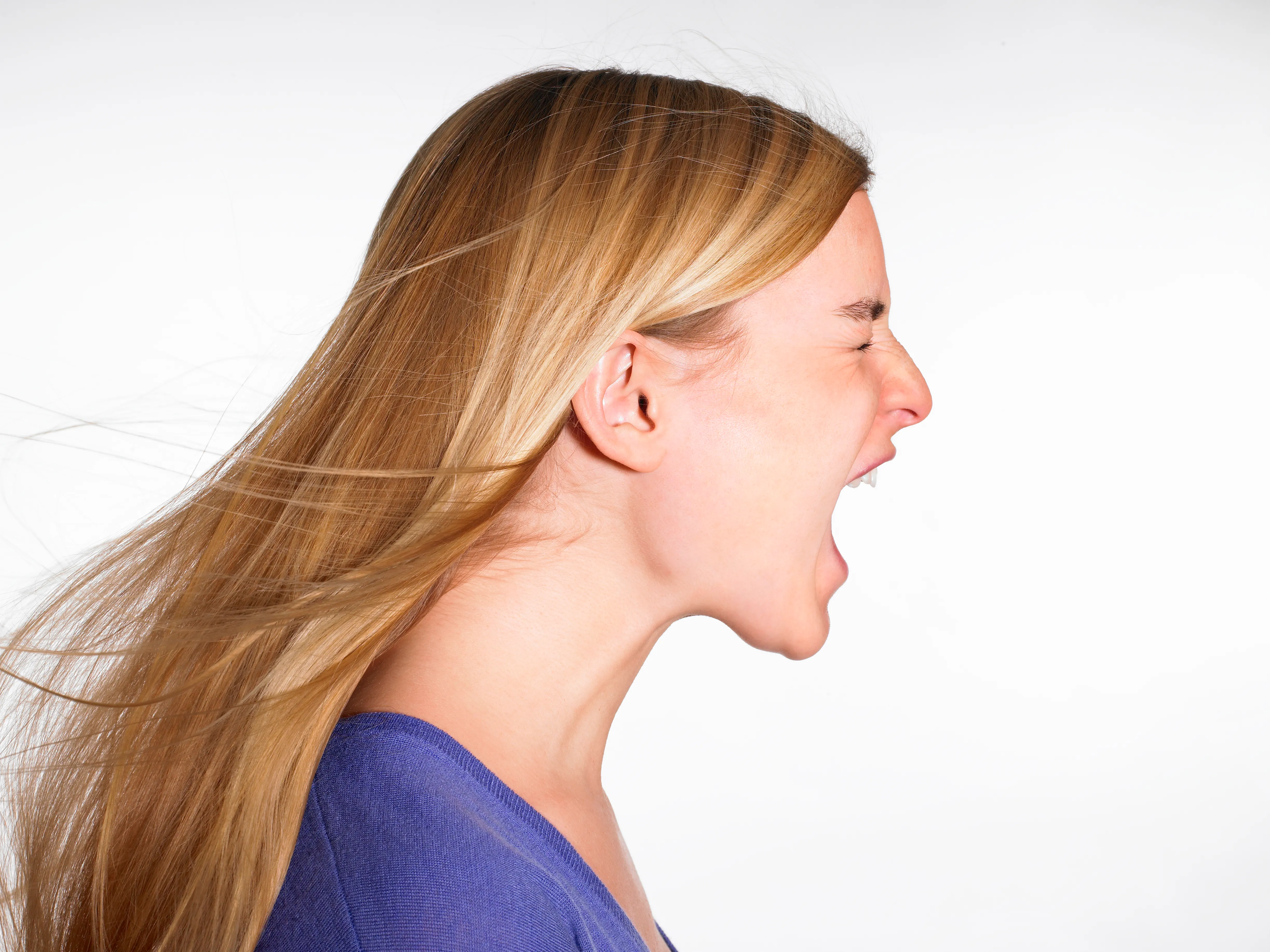 Frau steht Krebs und Fürze in der Nase ihres Mannes