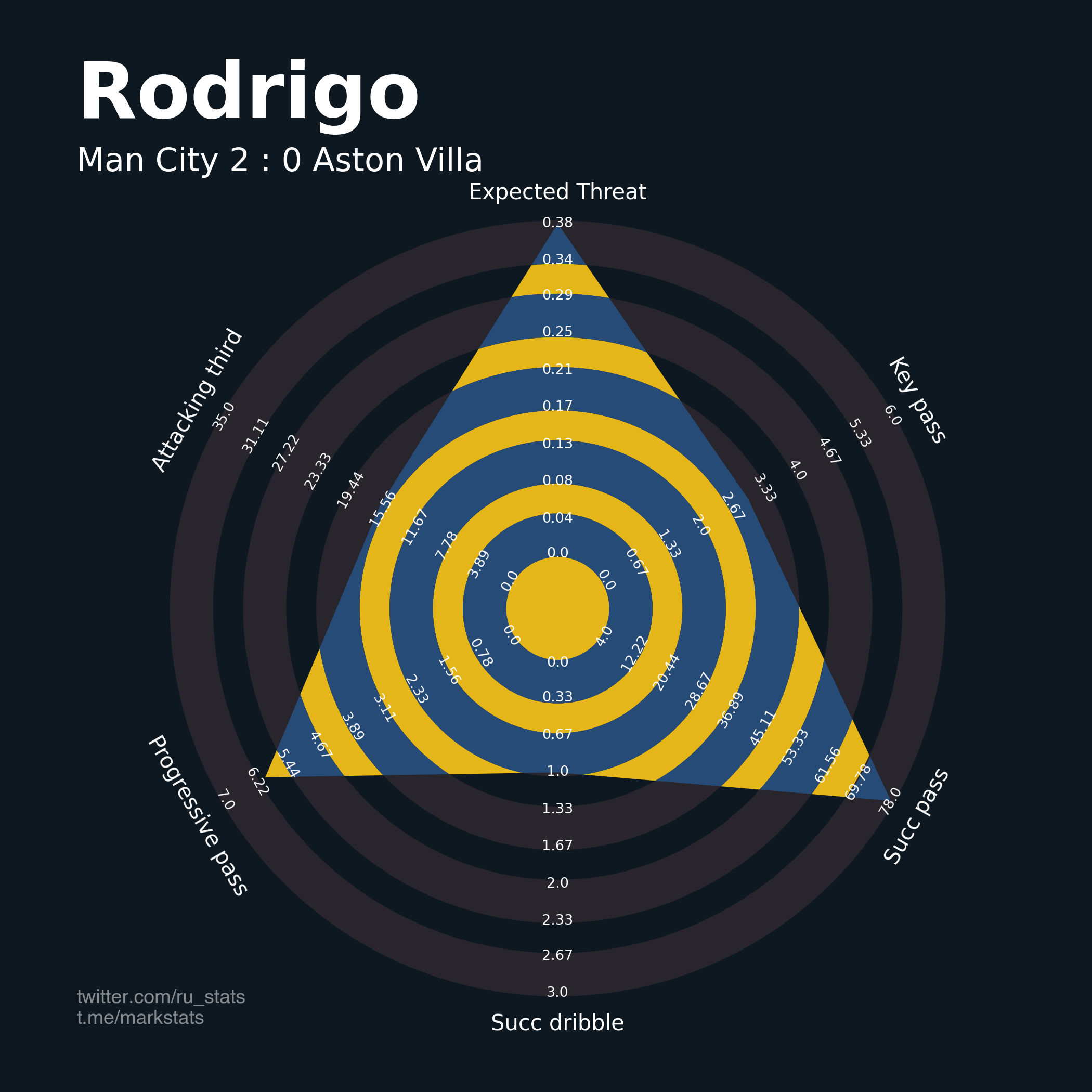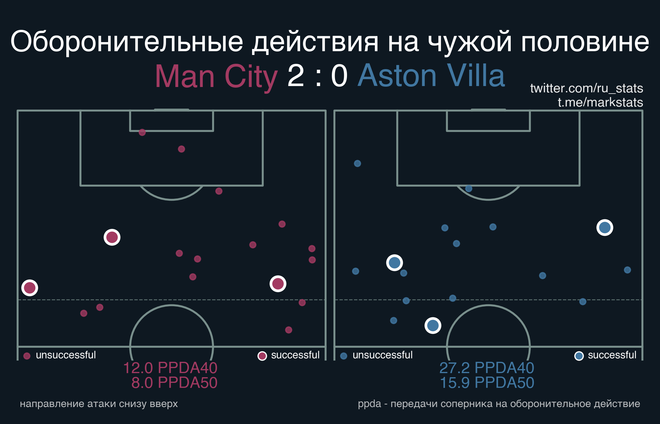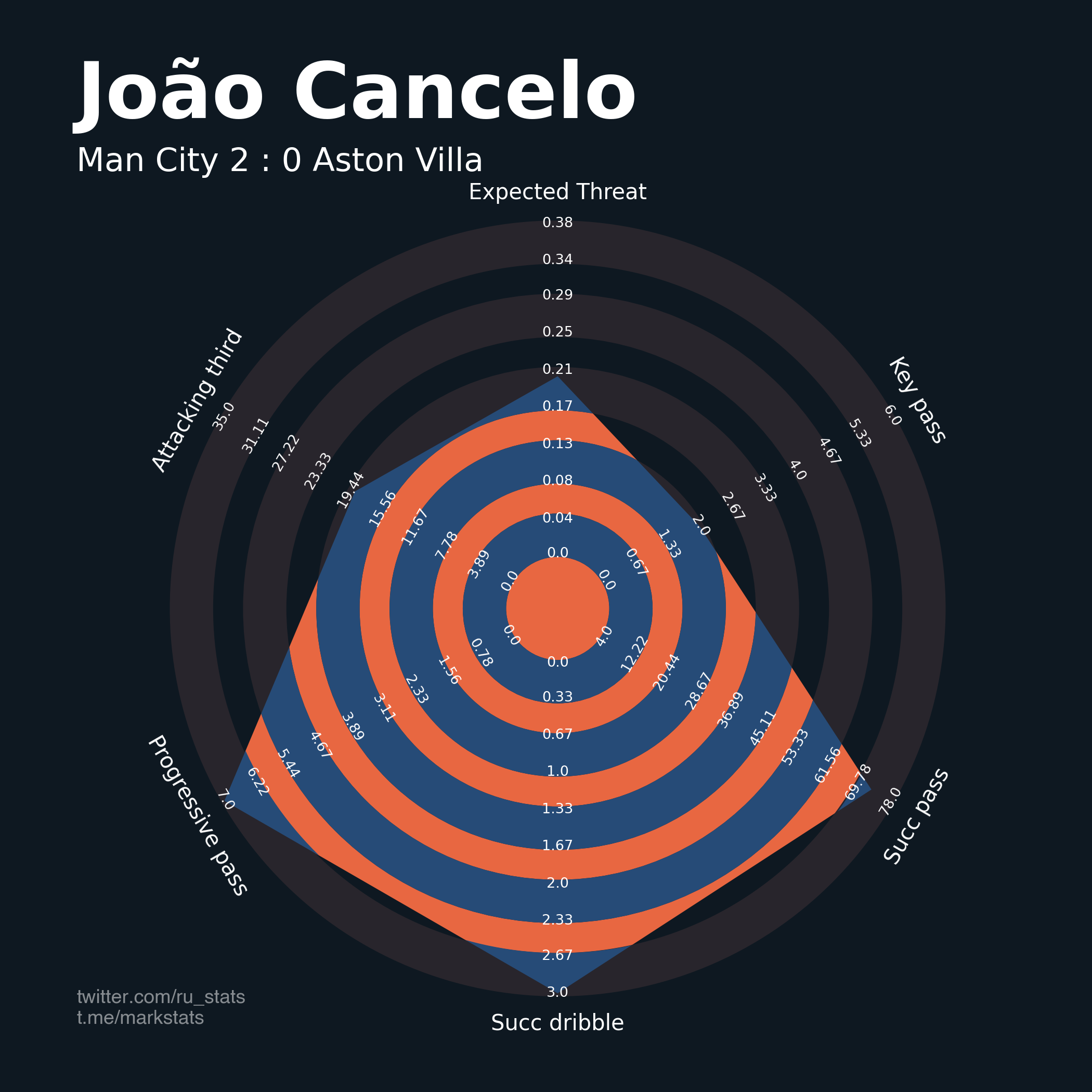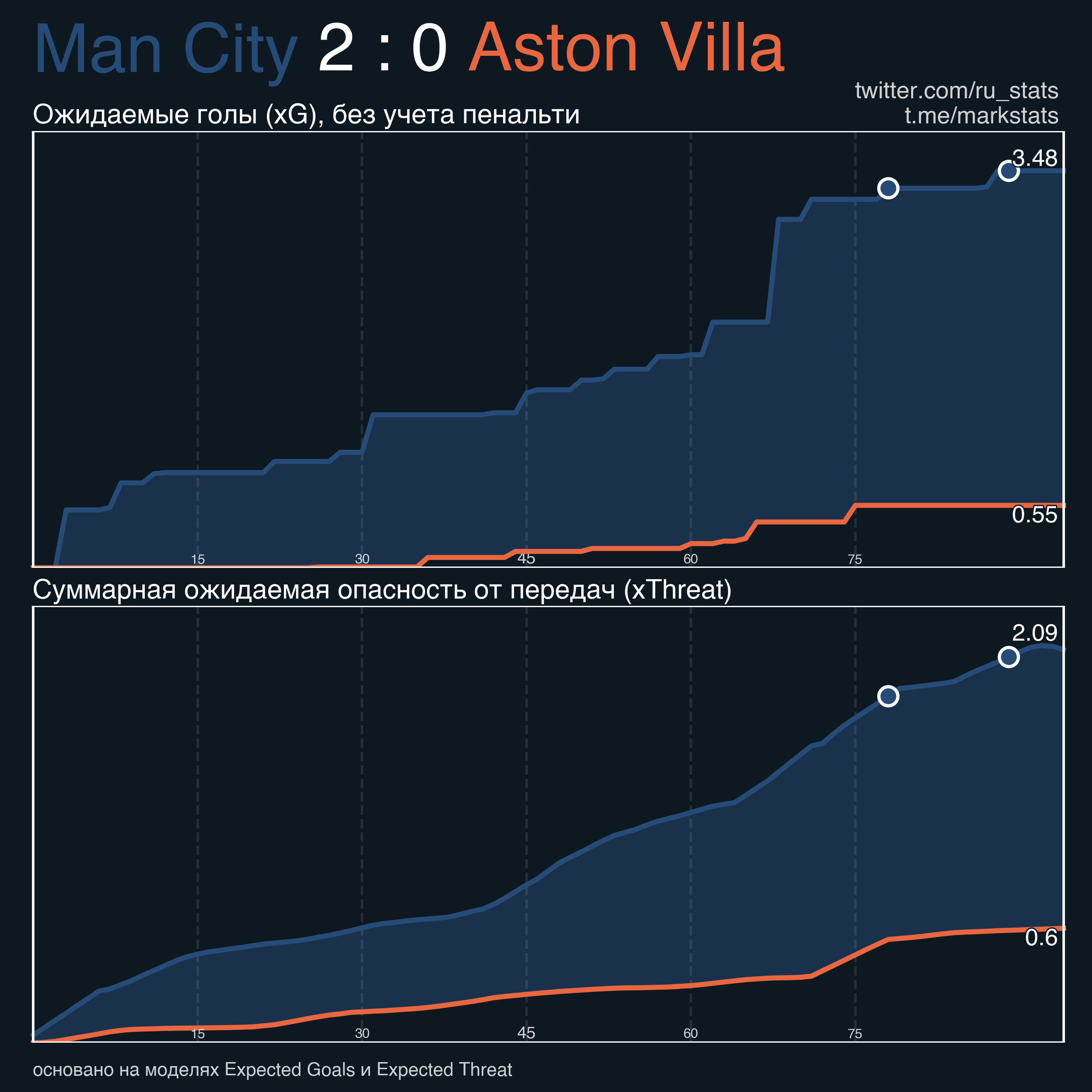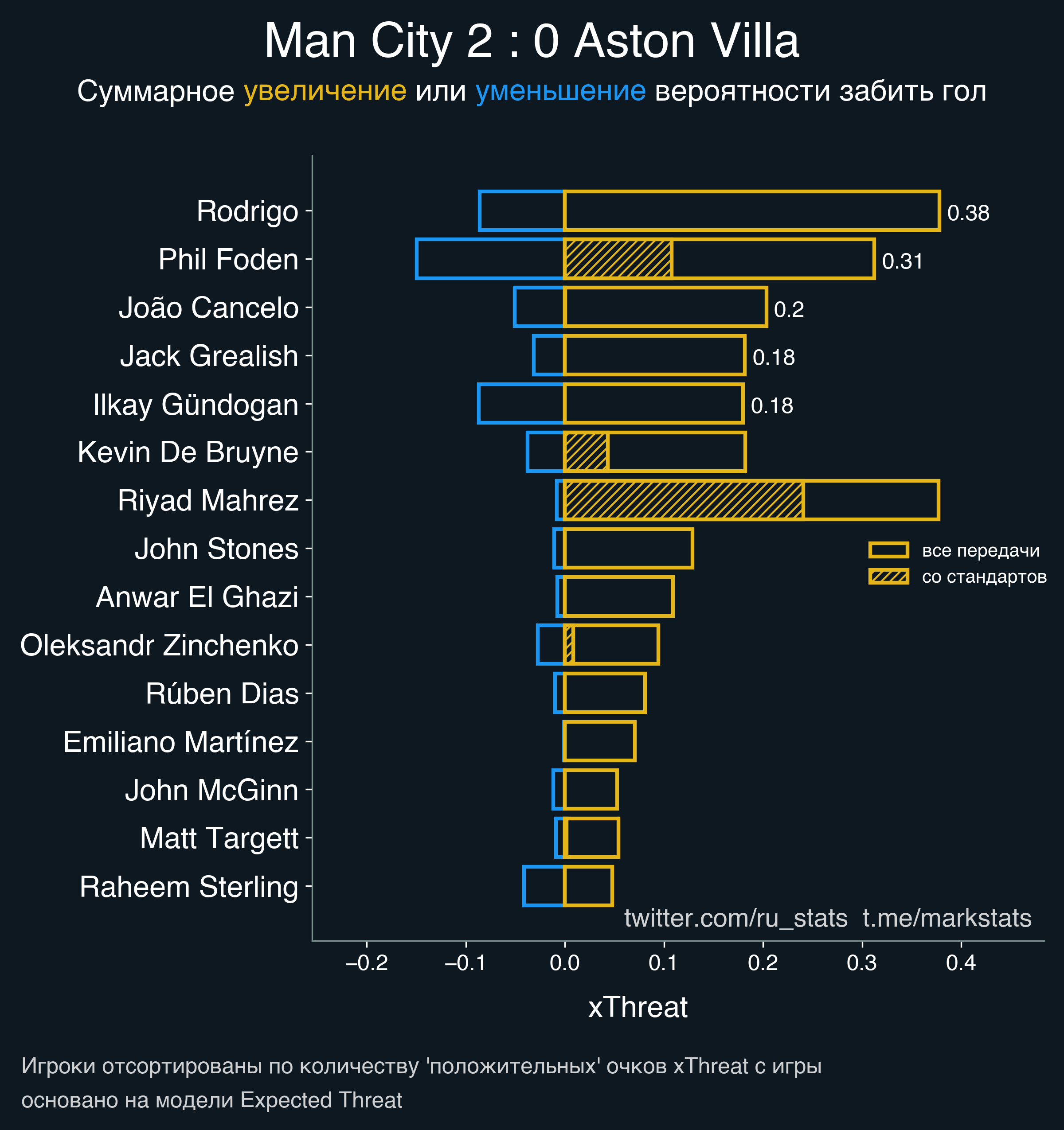 ▪ Ожидаемая опасность передач (xThreat): 2.09 - 0.61