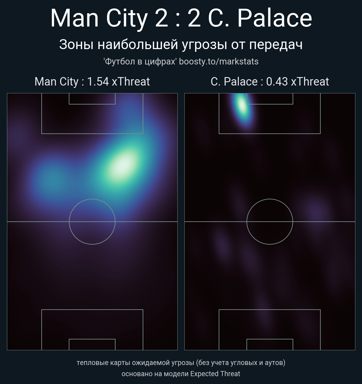 xThreat без учета угловых: 1.54 - 0.43