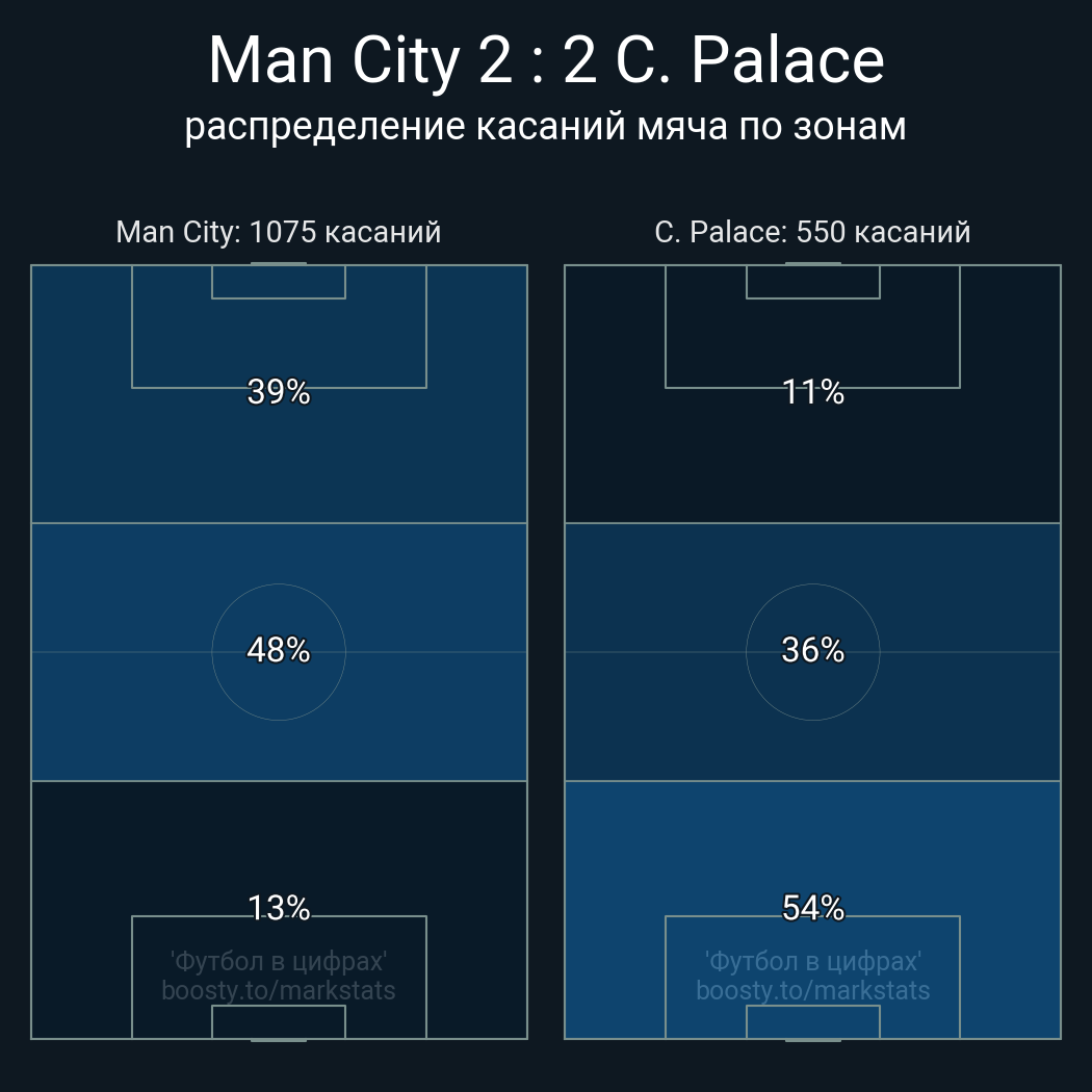 Касания в штрафной: 38 - 13