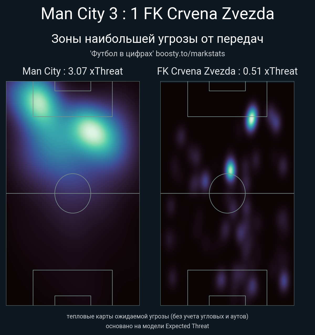 xThreat без учета угловых: 3.07 - 0.51