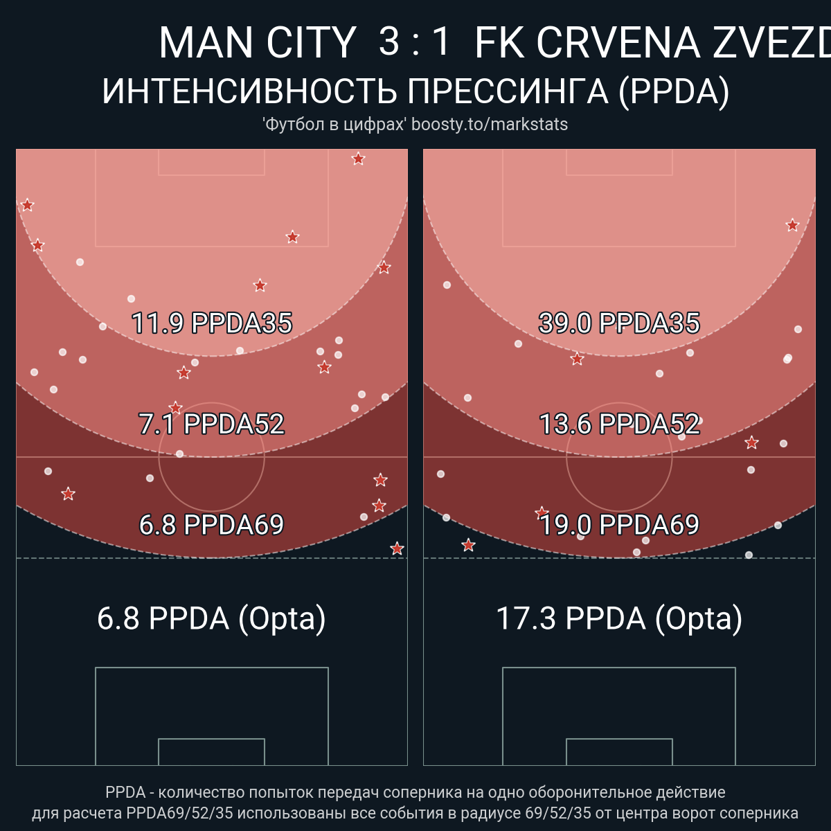 PPDA (Opta): 6.8 - 17.3