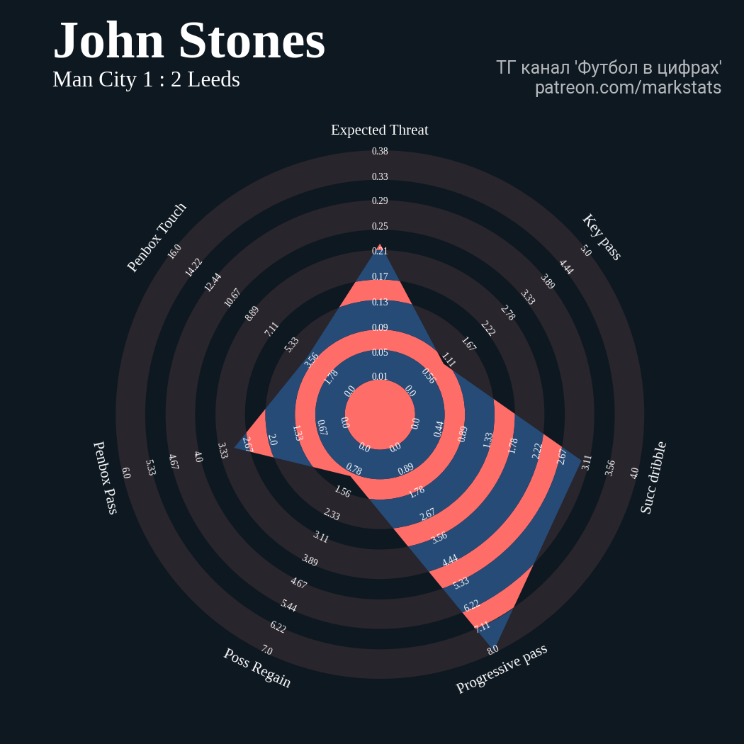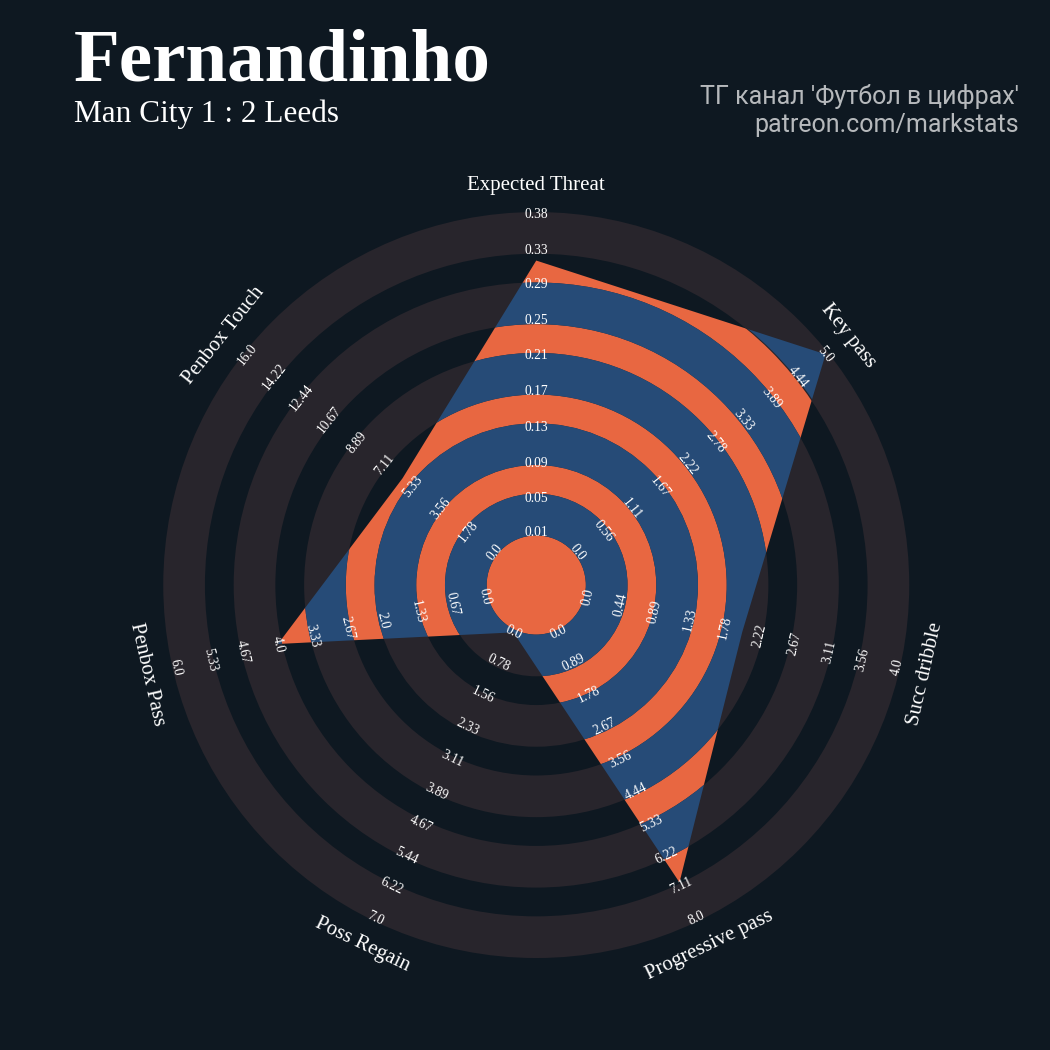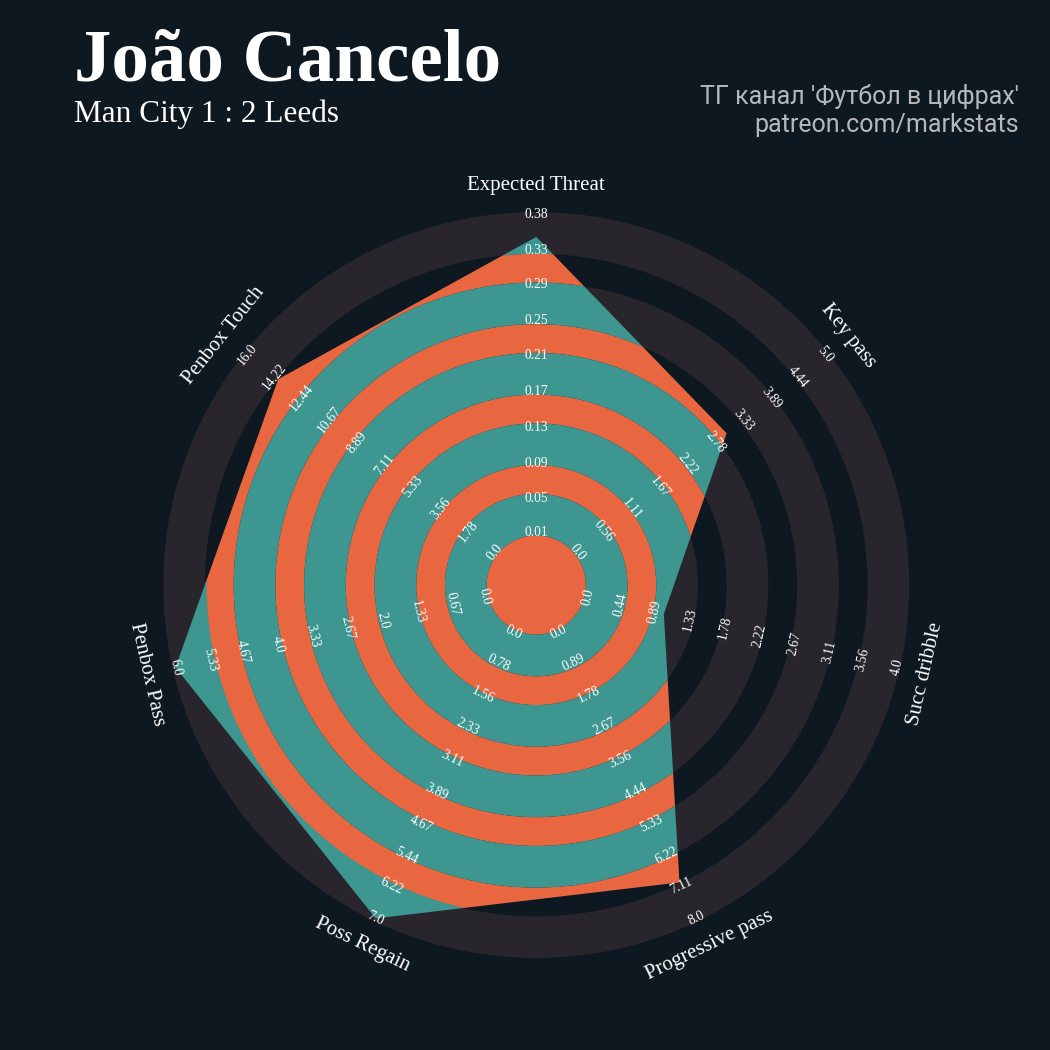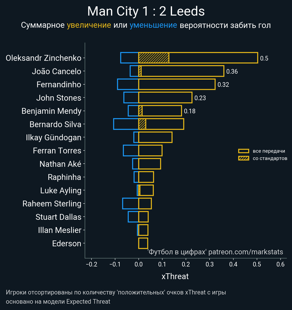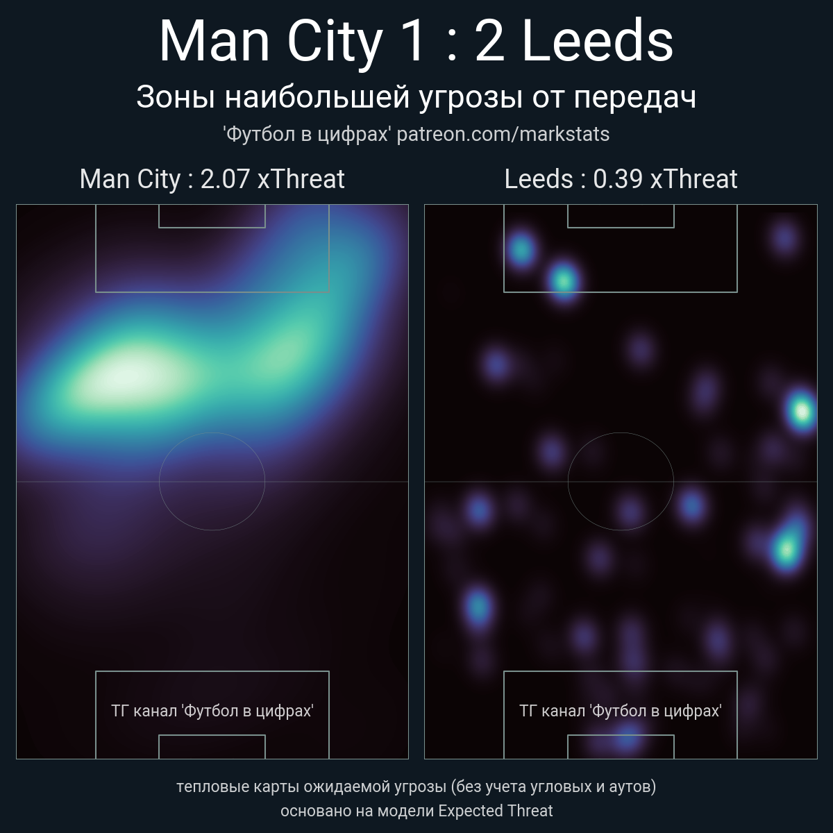 ▪ xThreat без учета угловых: 2.07 - 0.39