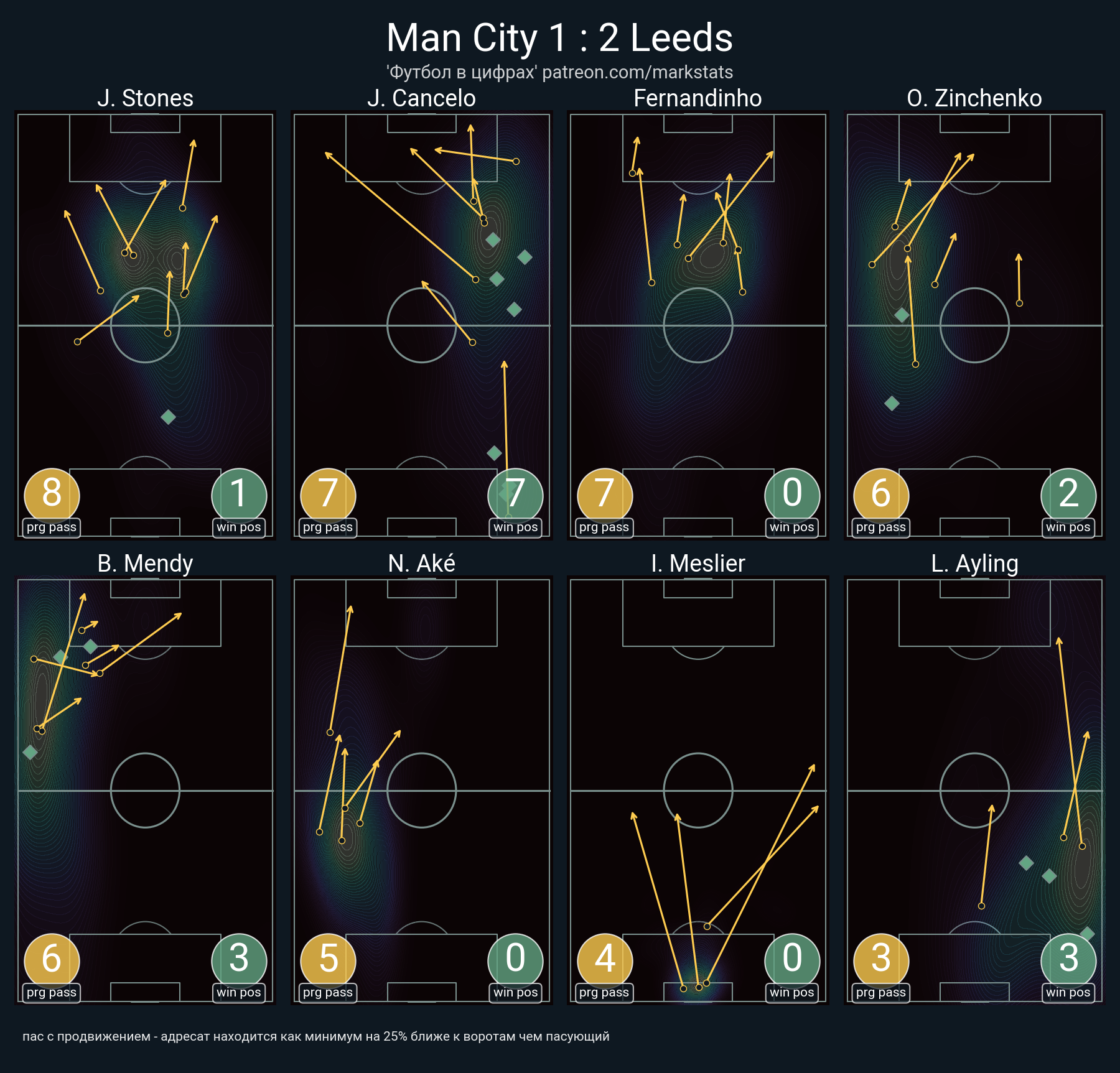 ▪ 33 успешных передач из 40 попыток (6 с продвижением, 11 на трети соперника)