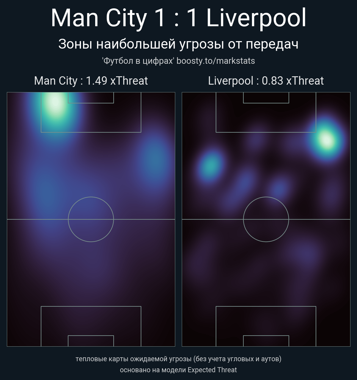 xThreat без учета угловых: 1.49 - 0.83