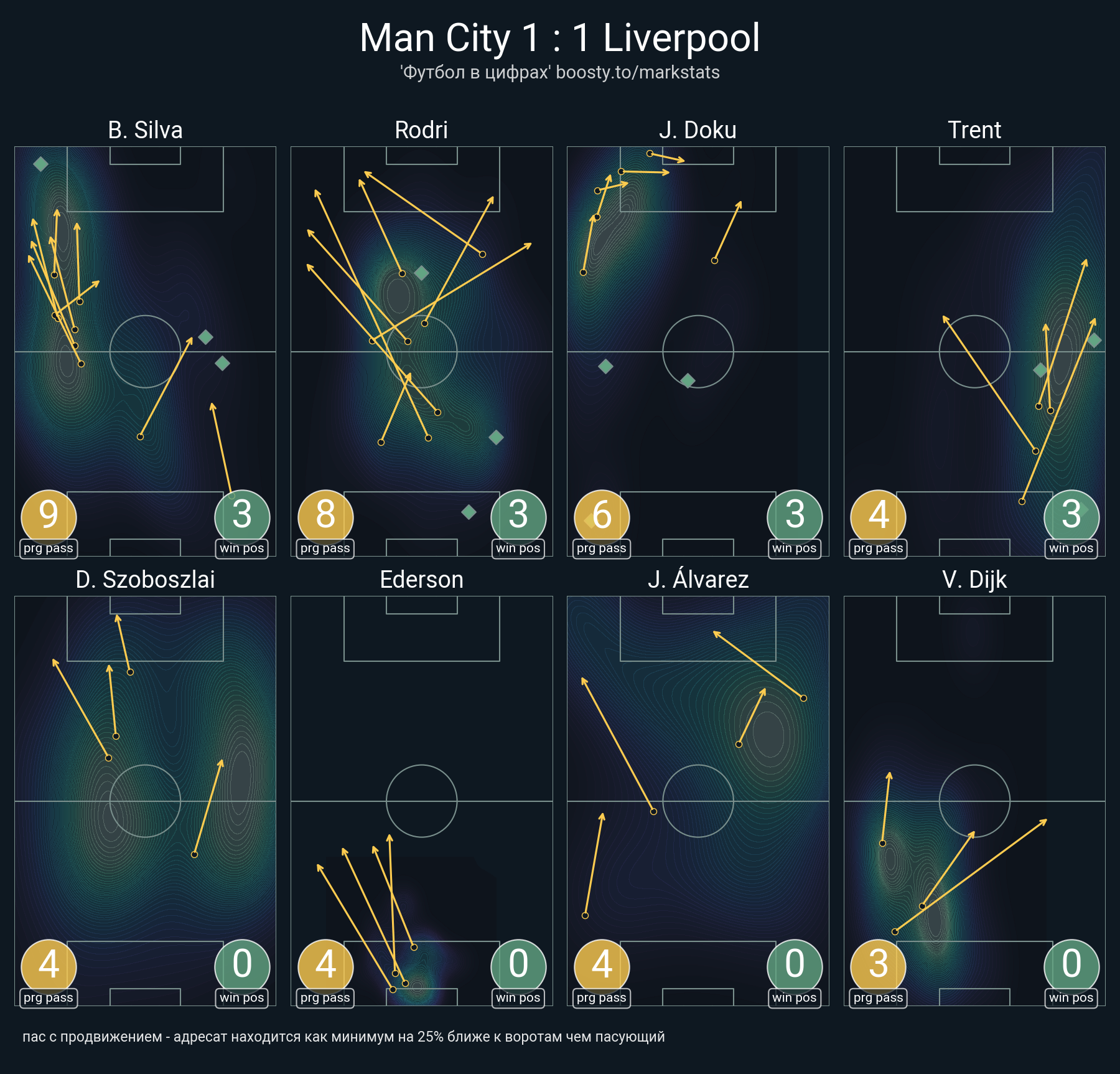 58 успешных передач из 65 попыток (1 ассист, 1 под удар, 3 с продвижением, 9 на трети соперника)