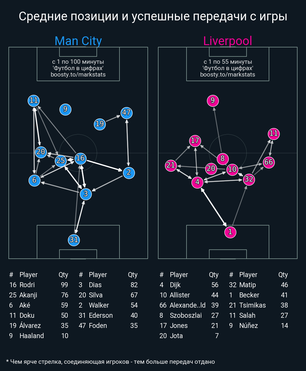 43 успешных передач из 50 попыток (4 под удар, 6 с продвижением, 24 на трети соперника)