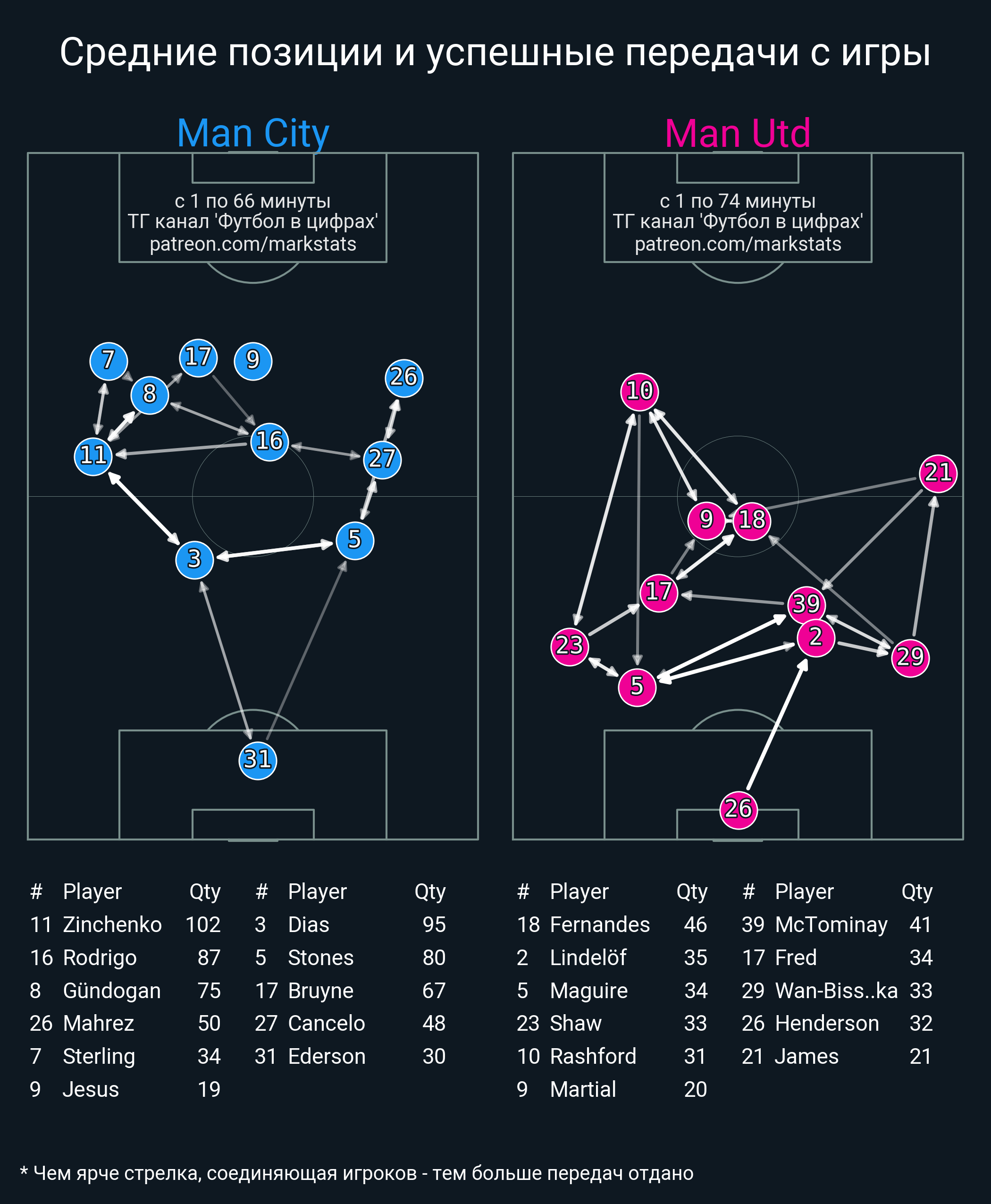 Футбол в цифрахСтатистика матча Man City - Man Utd