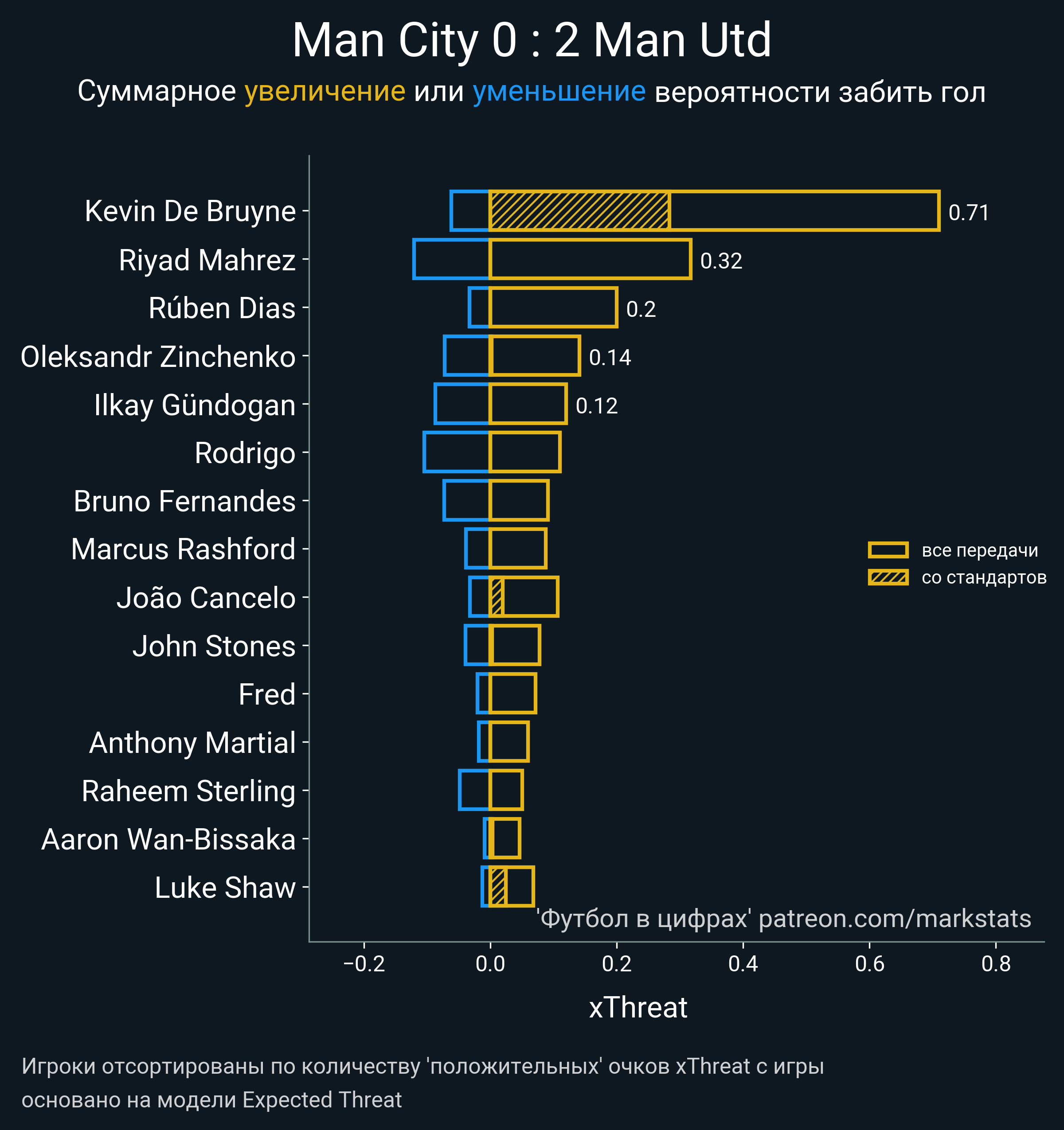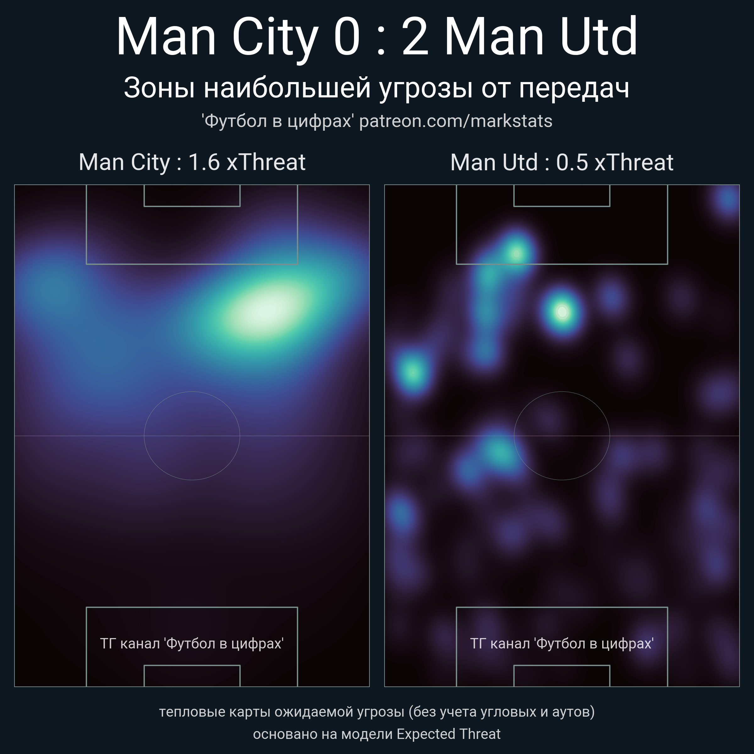 ▪ xThreat без учета угловых: 1.6 - 0.5