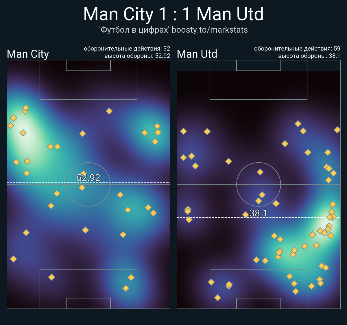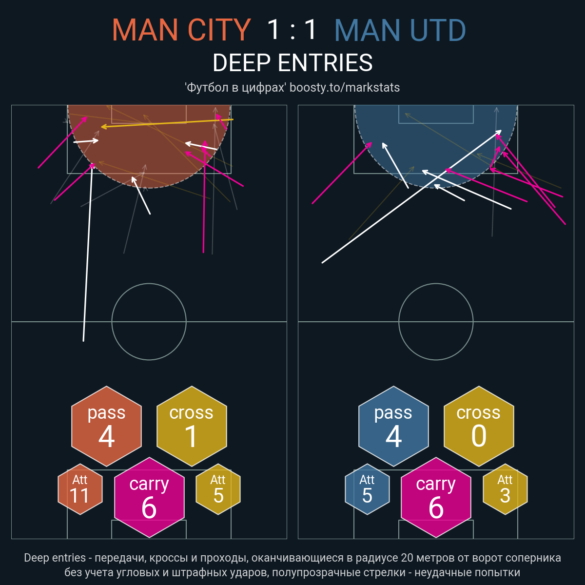 Касания в штрафной: 36 - 21