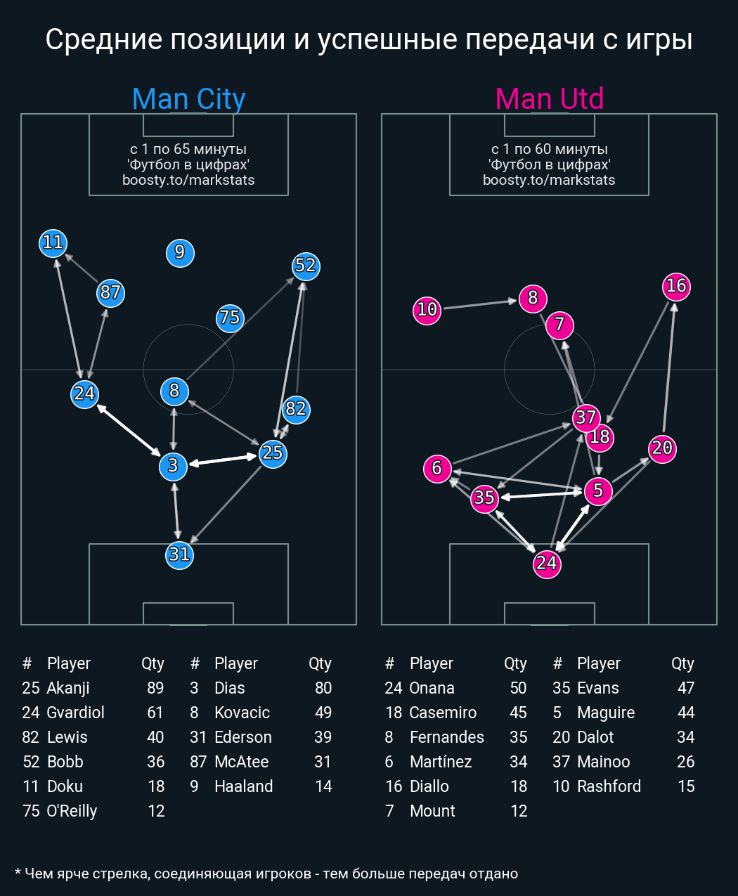 80 успешных передач из 89 попыток (6 с продвижением, 2 на трети соперника)
