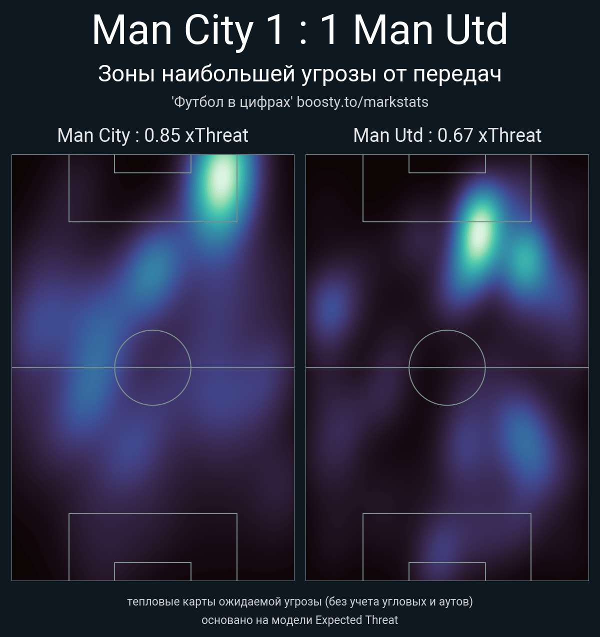 xThreat без учета угловых: 0.85 - 0.67