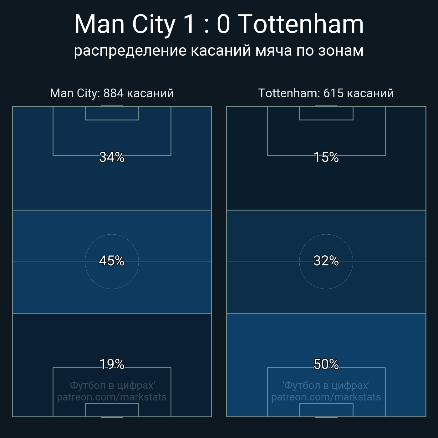Футбол в цифрахСтатистика матча Man City - Tottenham