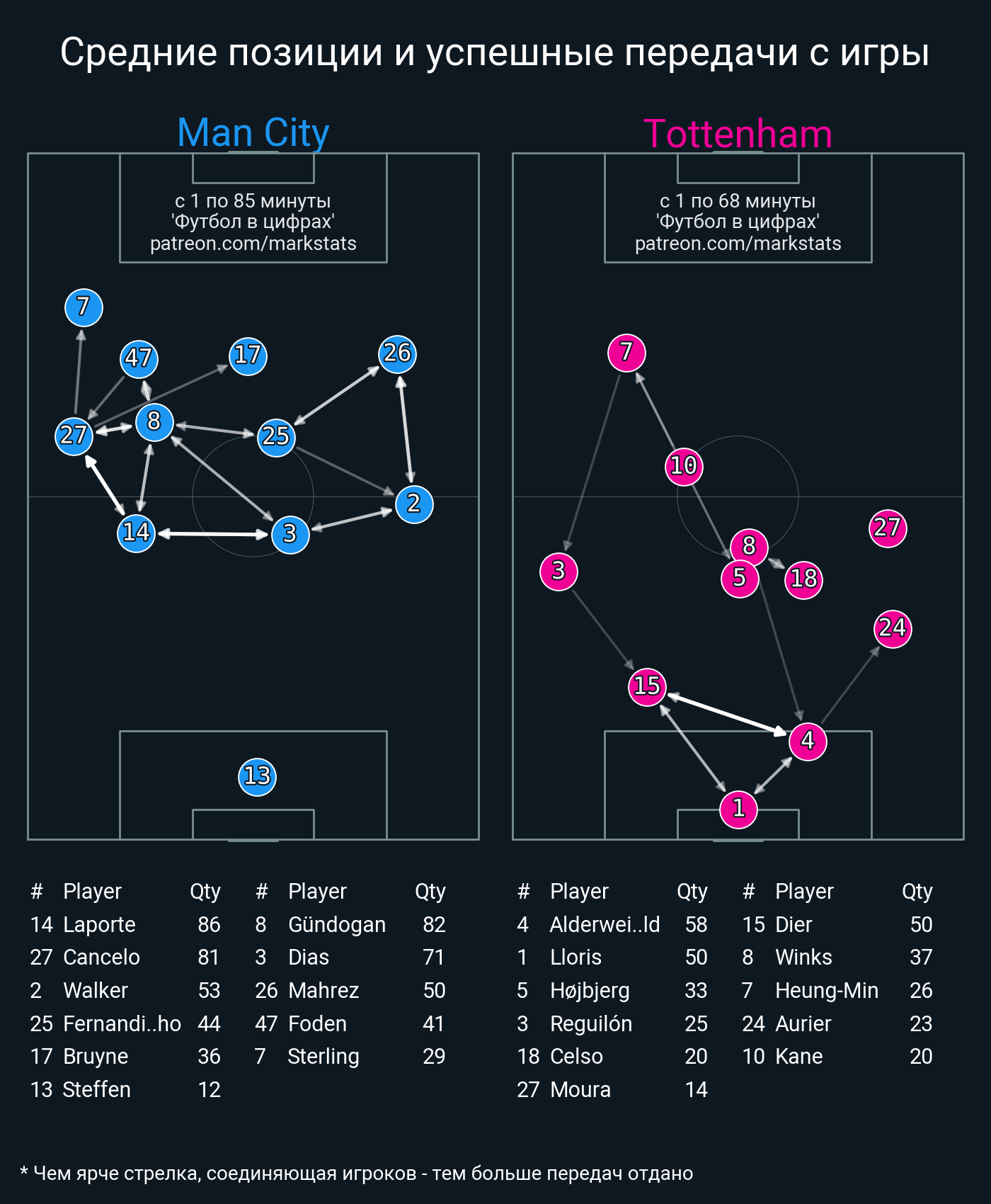 ▪ 43 успешных передач из 52 попыток (3 под удар, 7 с продвижением, 23 на трети соперника)