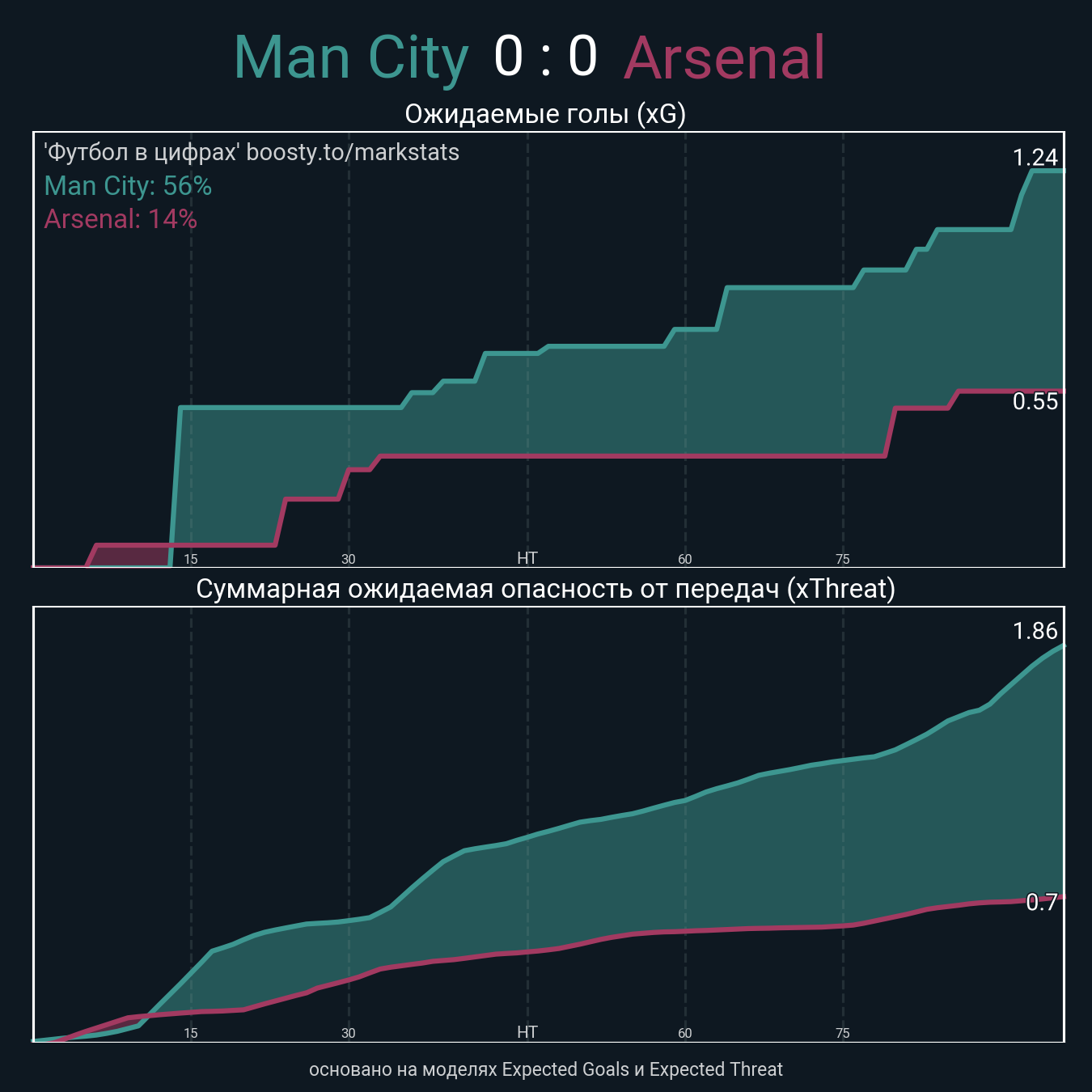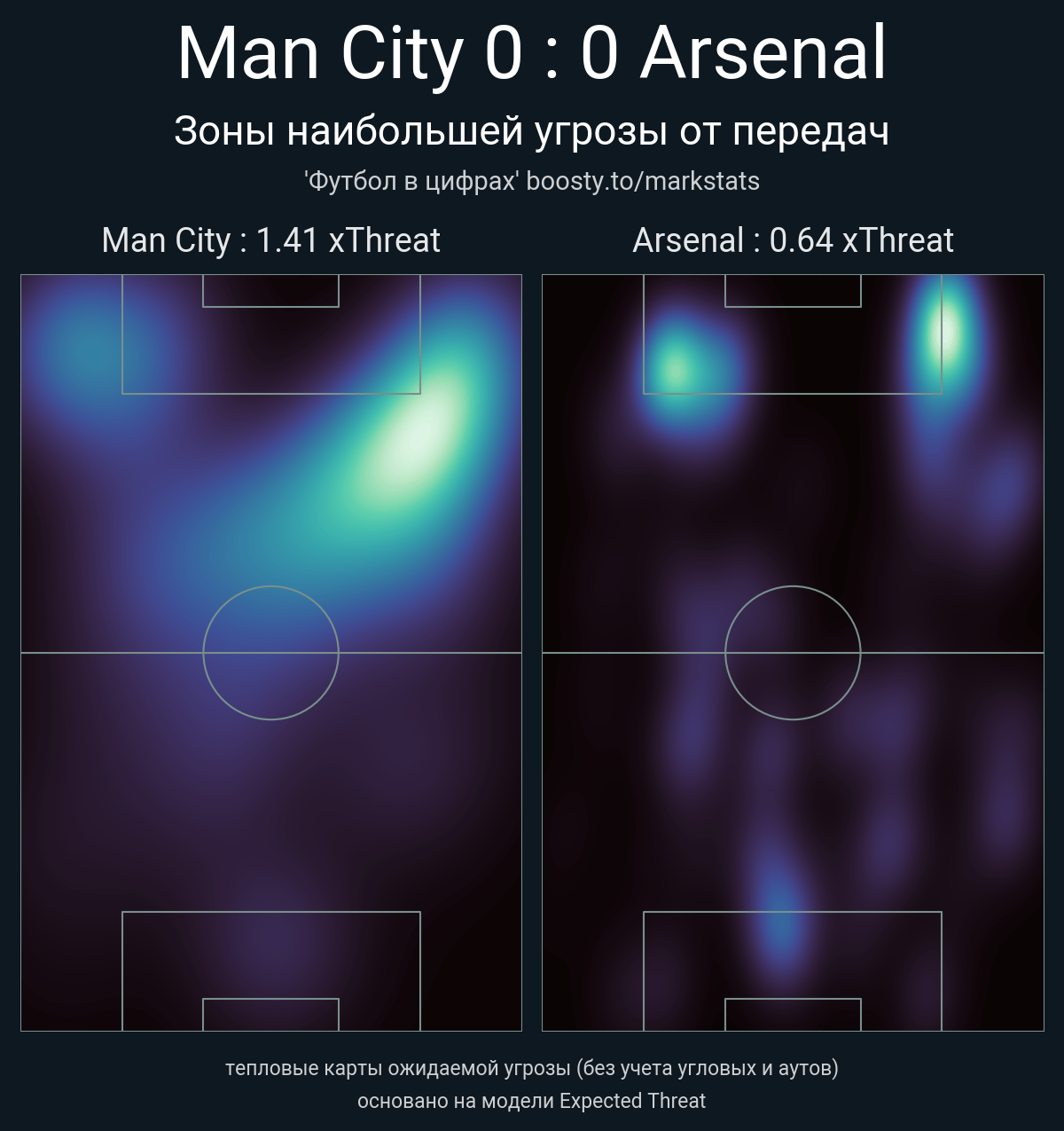 xThreat без учета угловых: 1.41 - 0.64