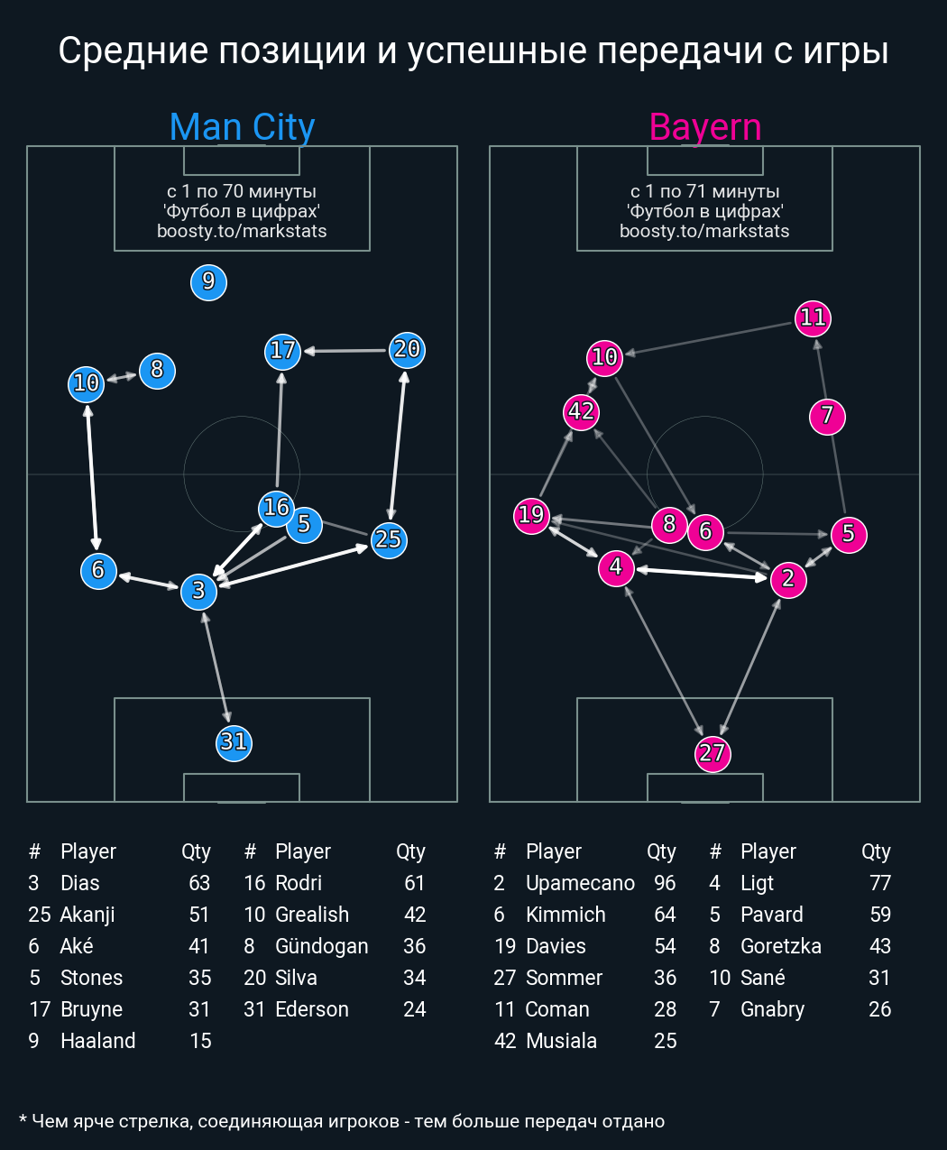 61 успешных передач из 68 попыток (2 под удар, 7 с продвижением, 11 на трети соперника)