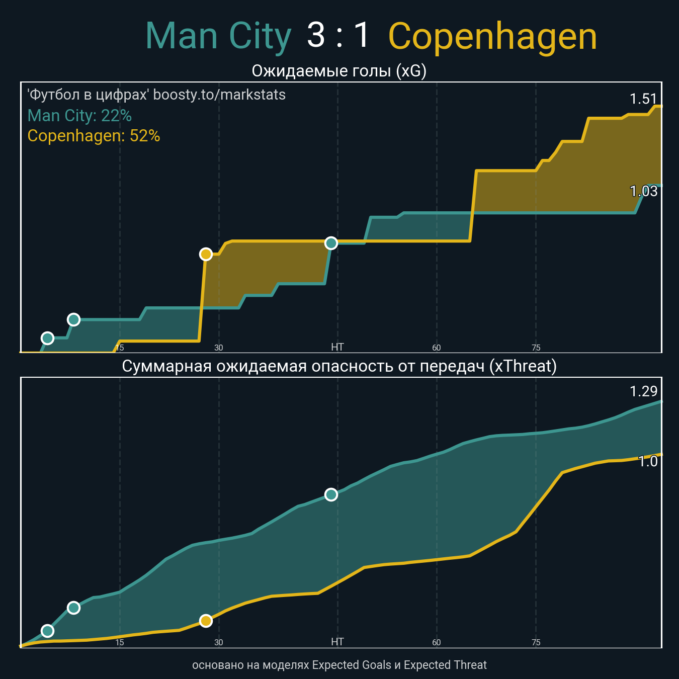 Очки xThreat с игры: