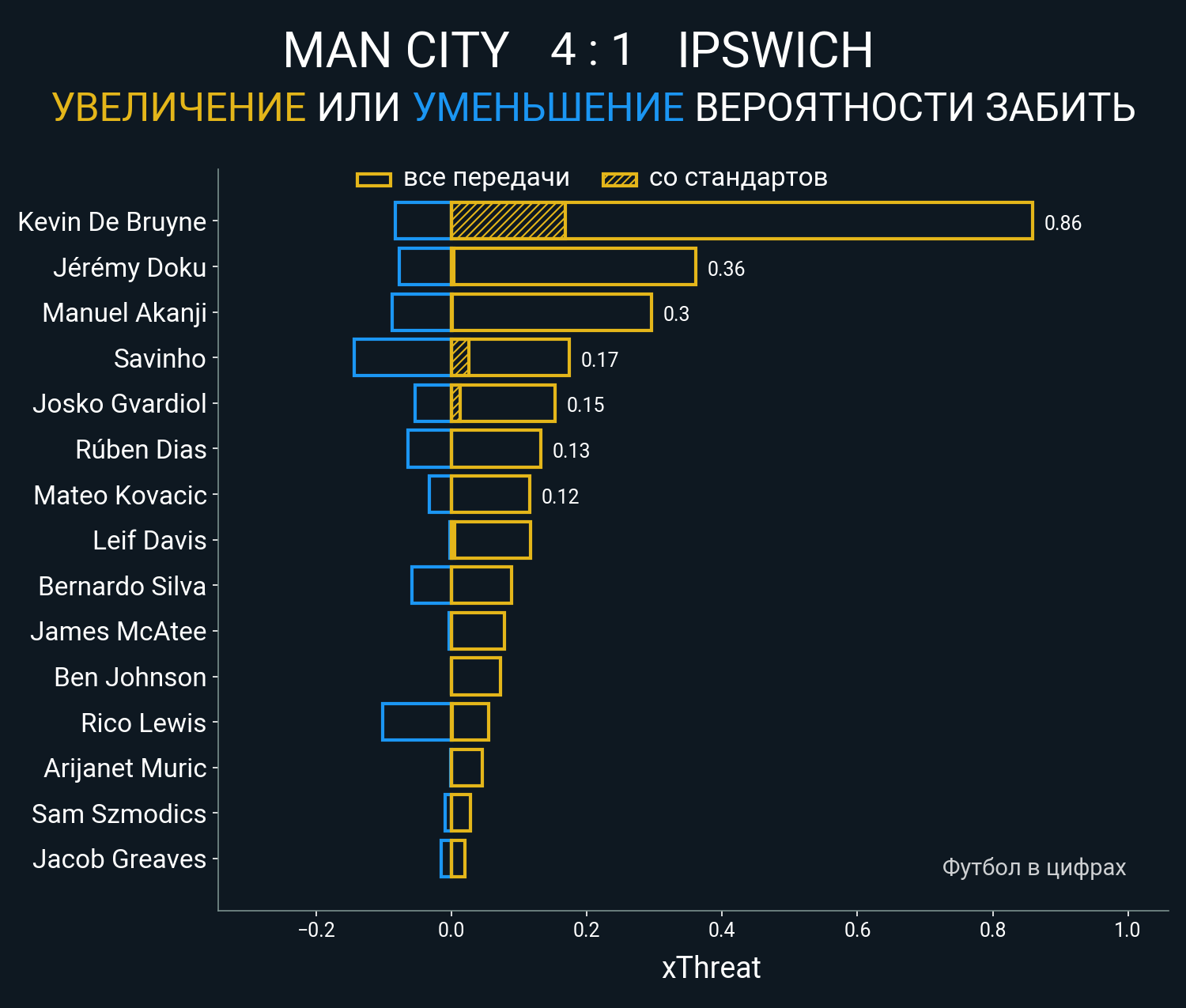 0.13 очка xT (+0.0 со стандартов)