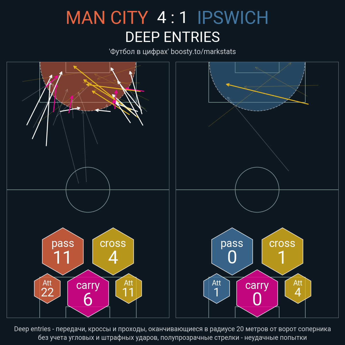 Касания в штрафной: 61 - 4