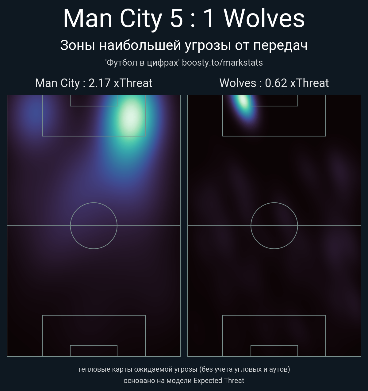 xThreat без учета угловых: 2.17 - 0.62