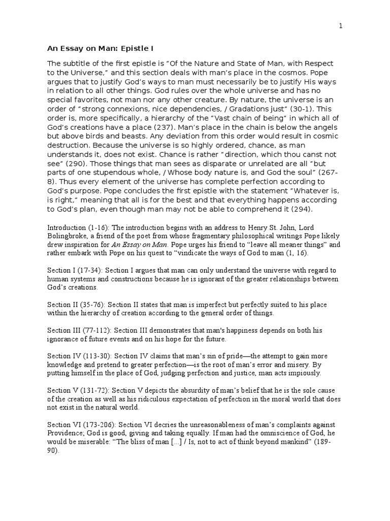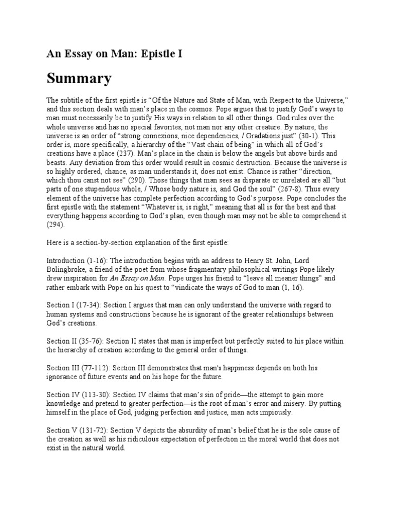 An Essay On Man Summary