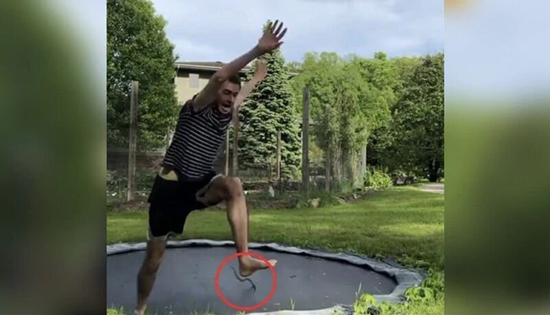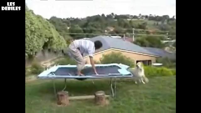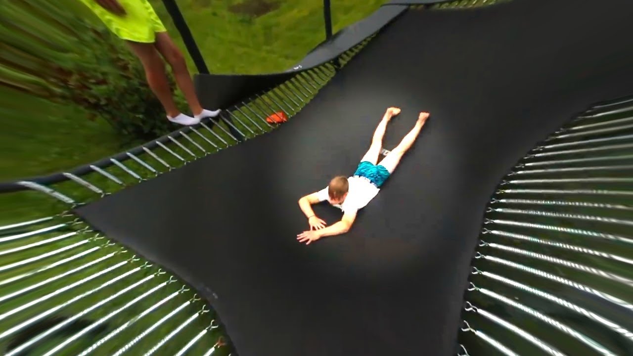 Man Loses Pants On Trampoline