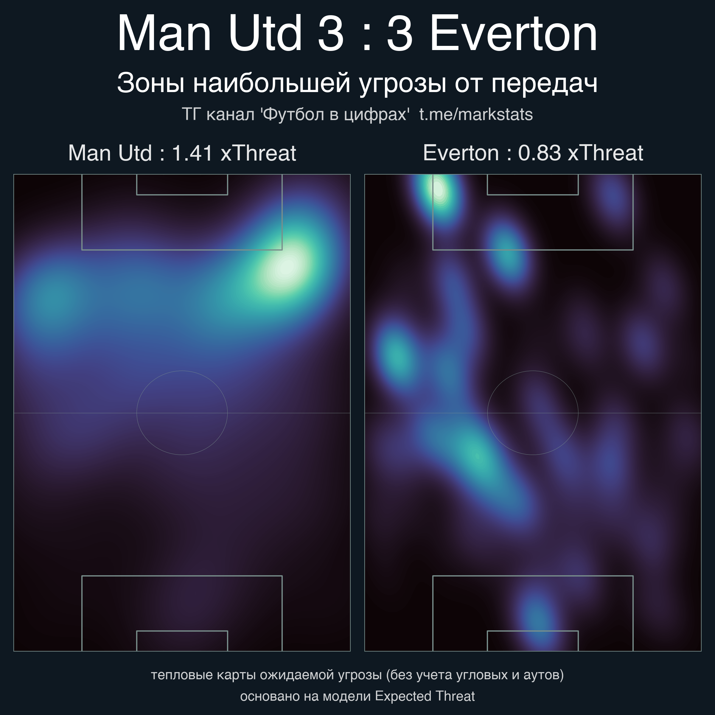 ▪ xThreat без учета угловых: 1.41 - 0.83