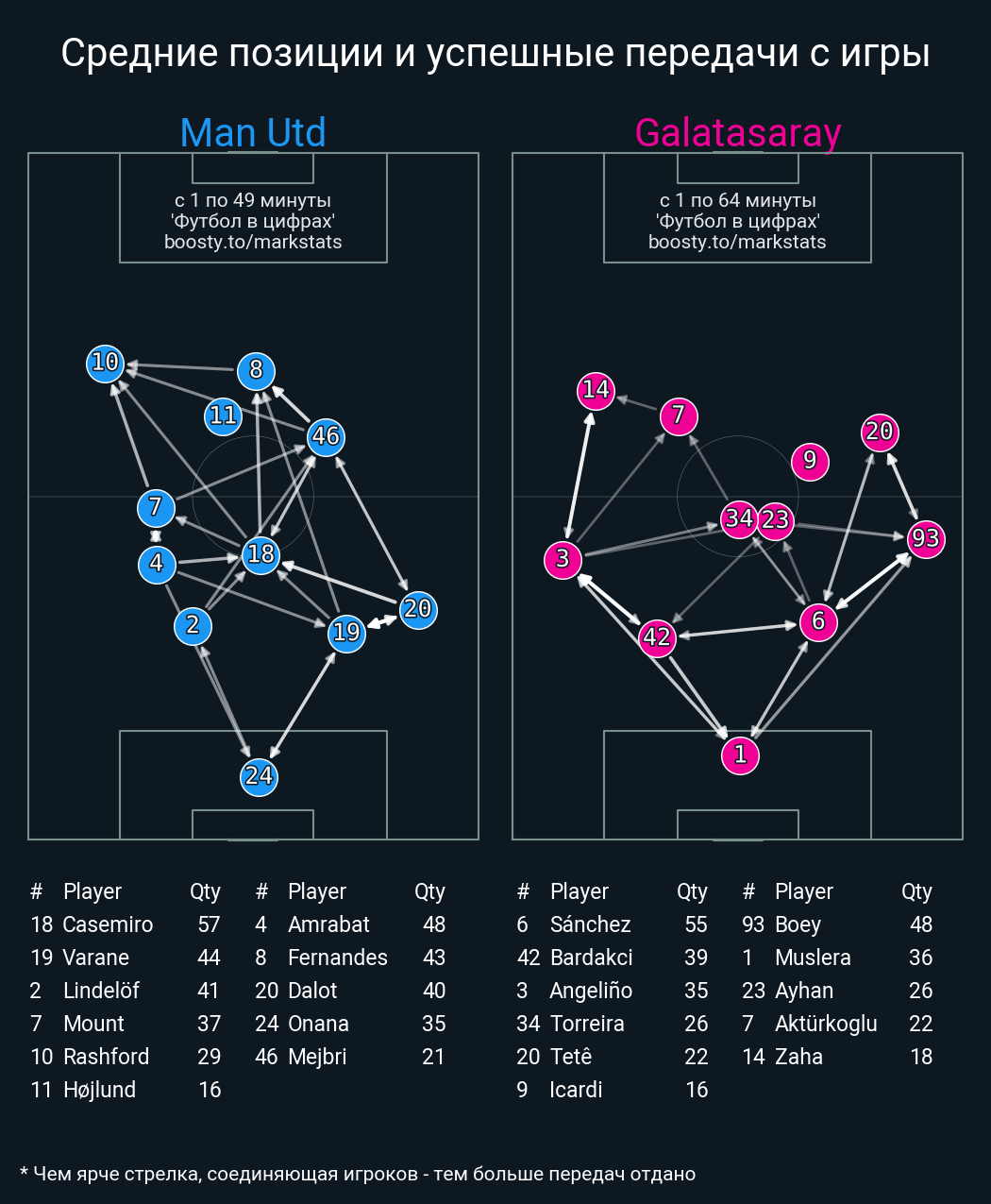 36 успешных передач из 55 попыток (2 под удар, 7 с продвижением, 17 на трети соперника)