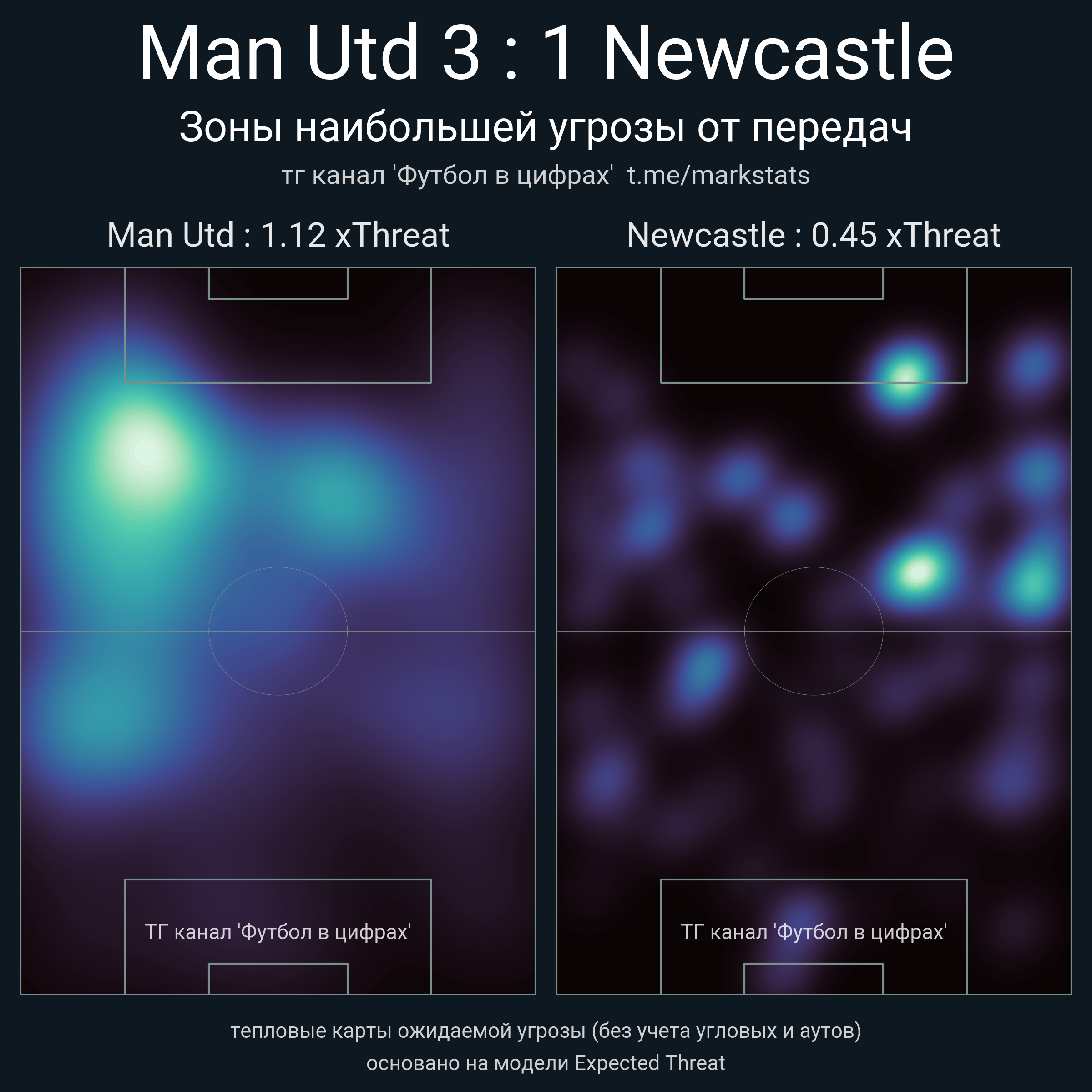 ▪ xThreat без учета угловых: 1.12 - 0.45