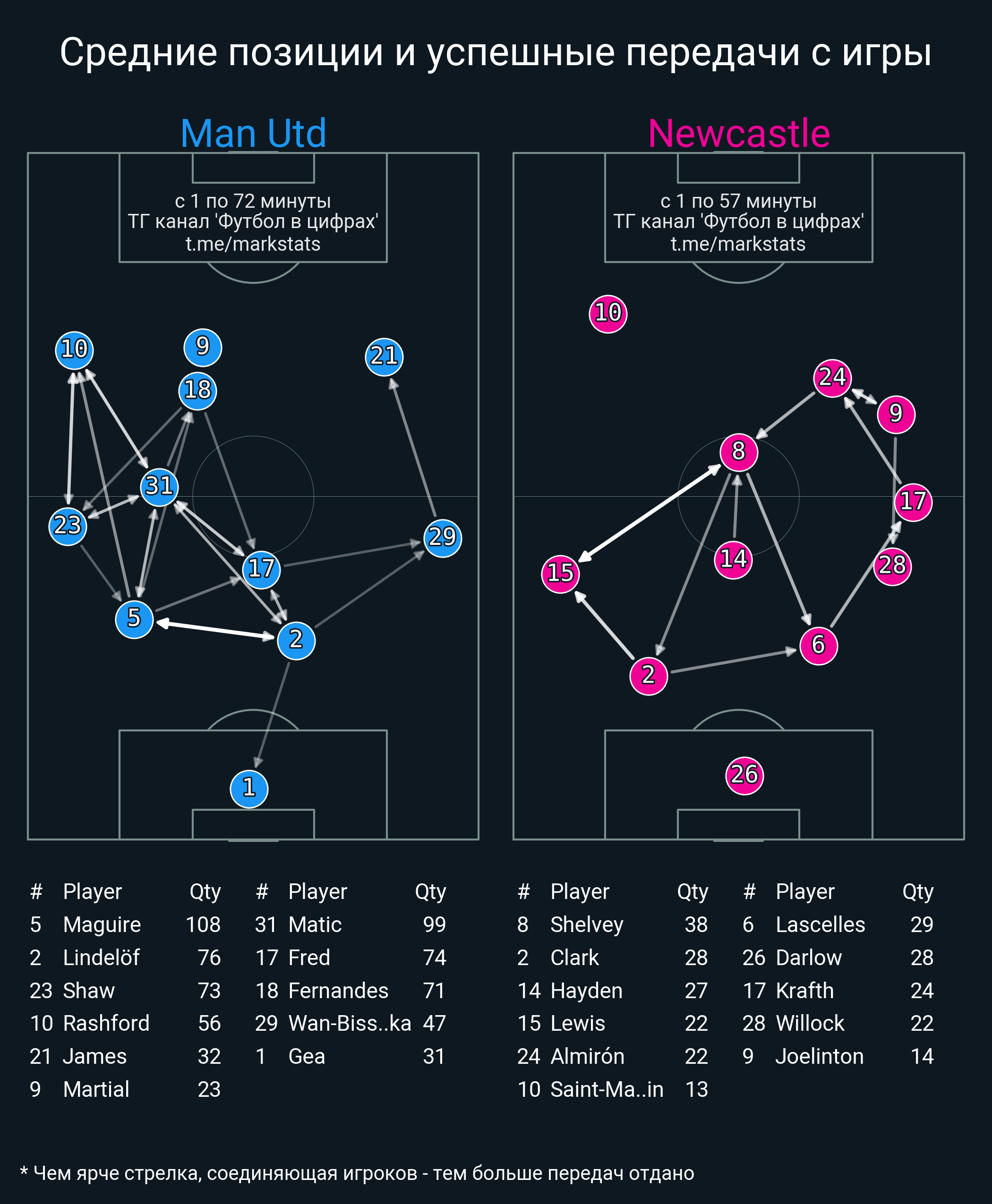 Футбол в цифрахСтатистика матча Man Utd - Newcastle
