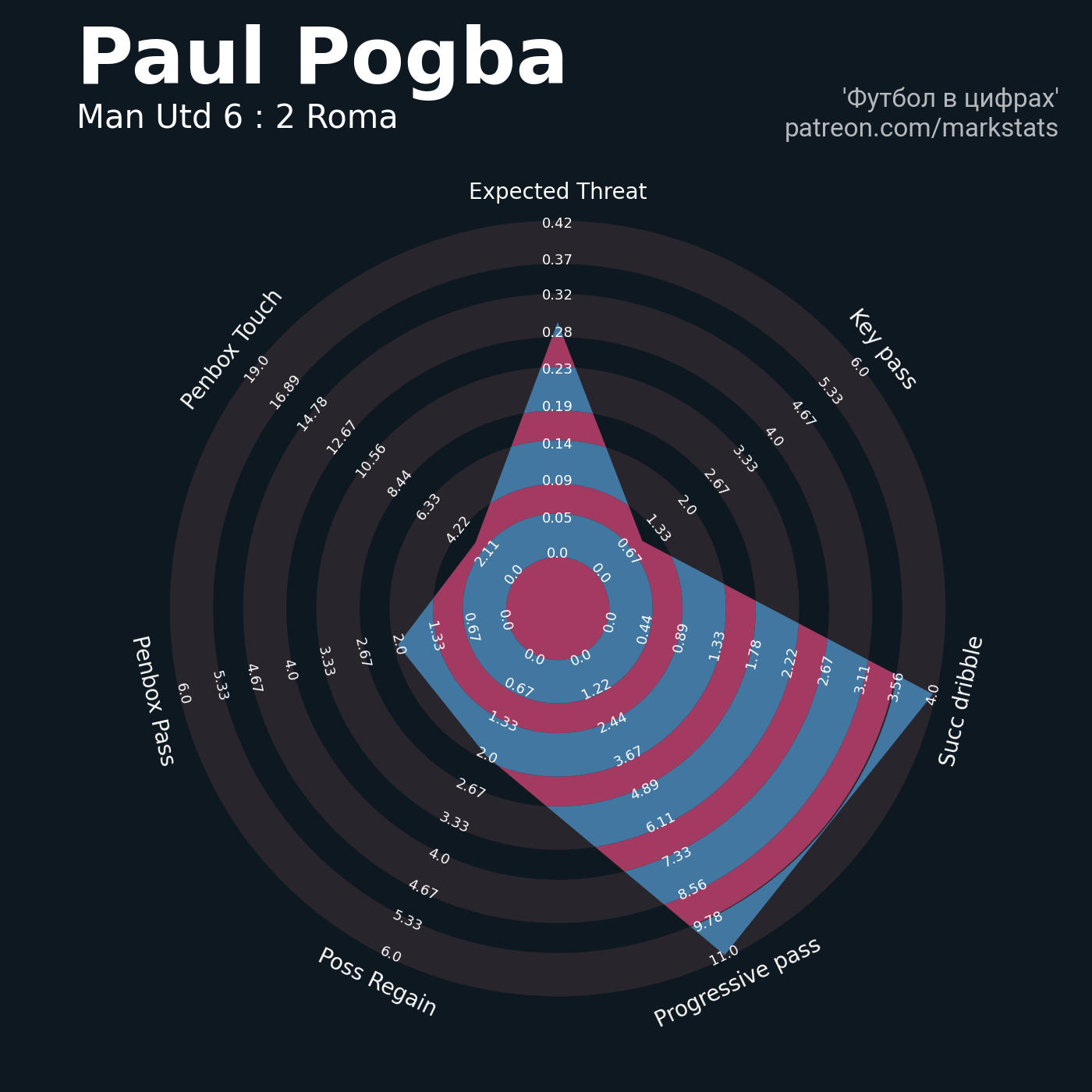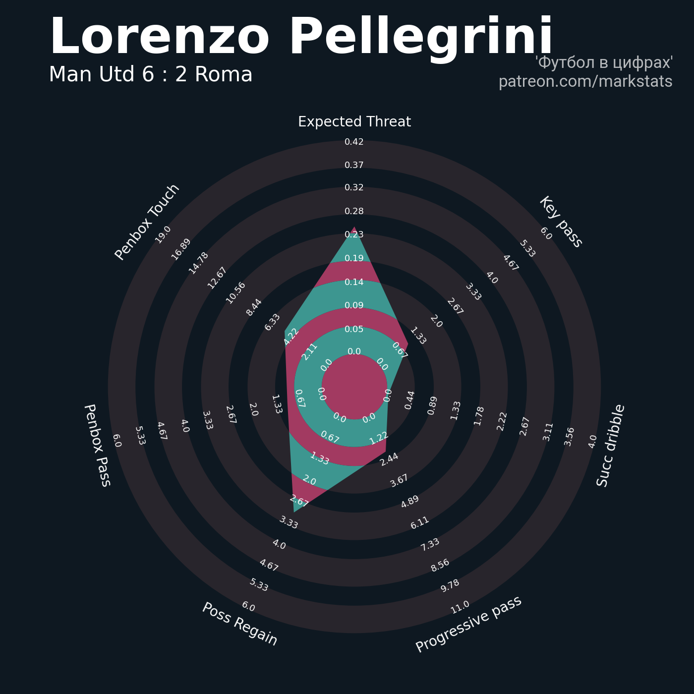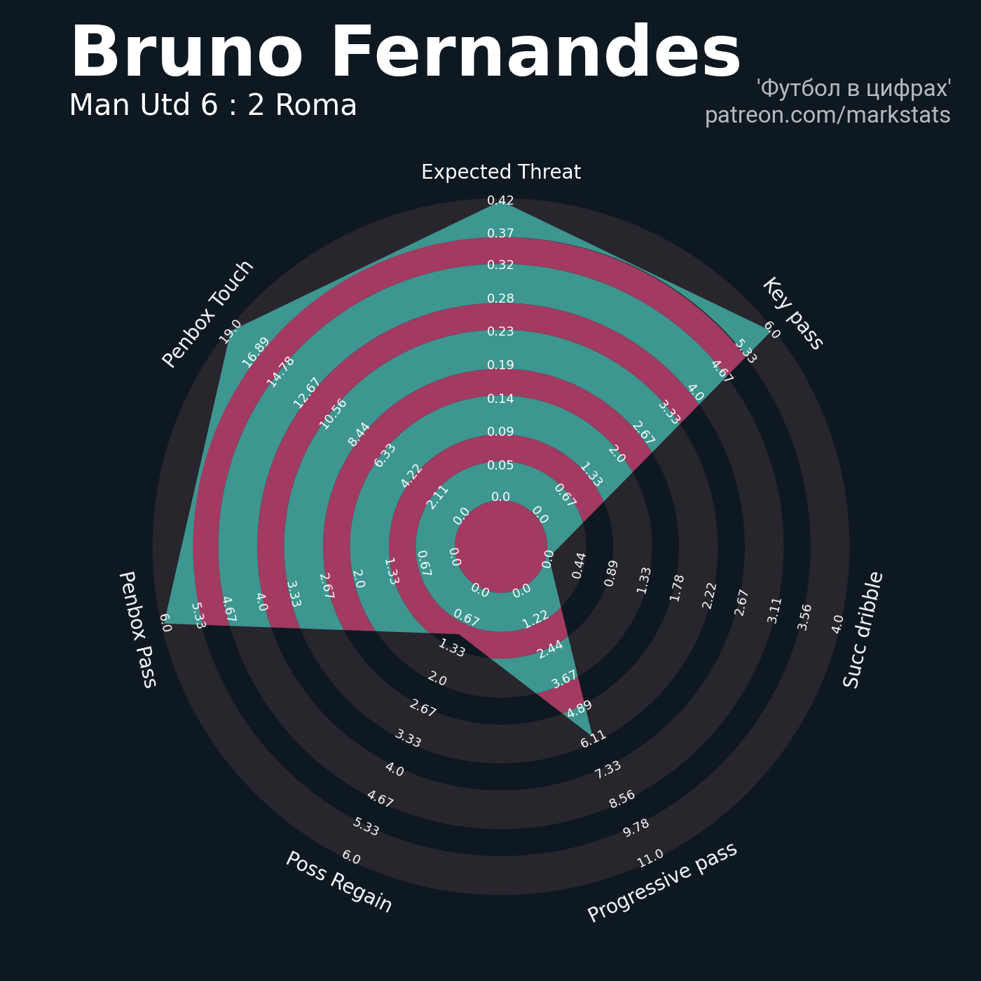 ▪ 0.42 очка xT (+0.09 со стандартов)