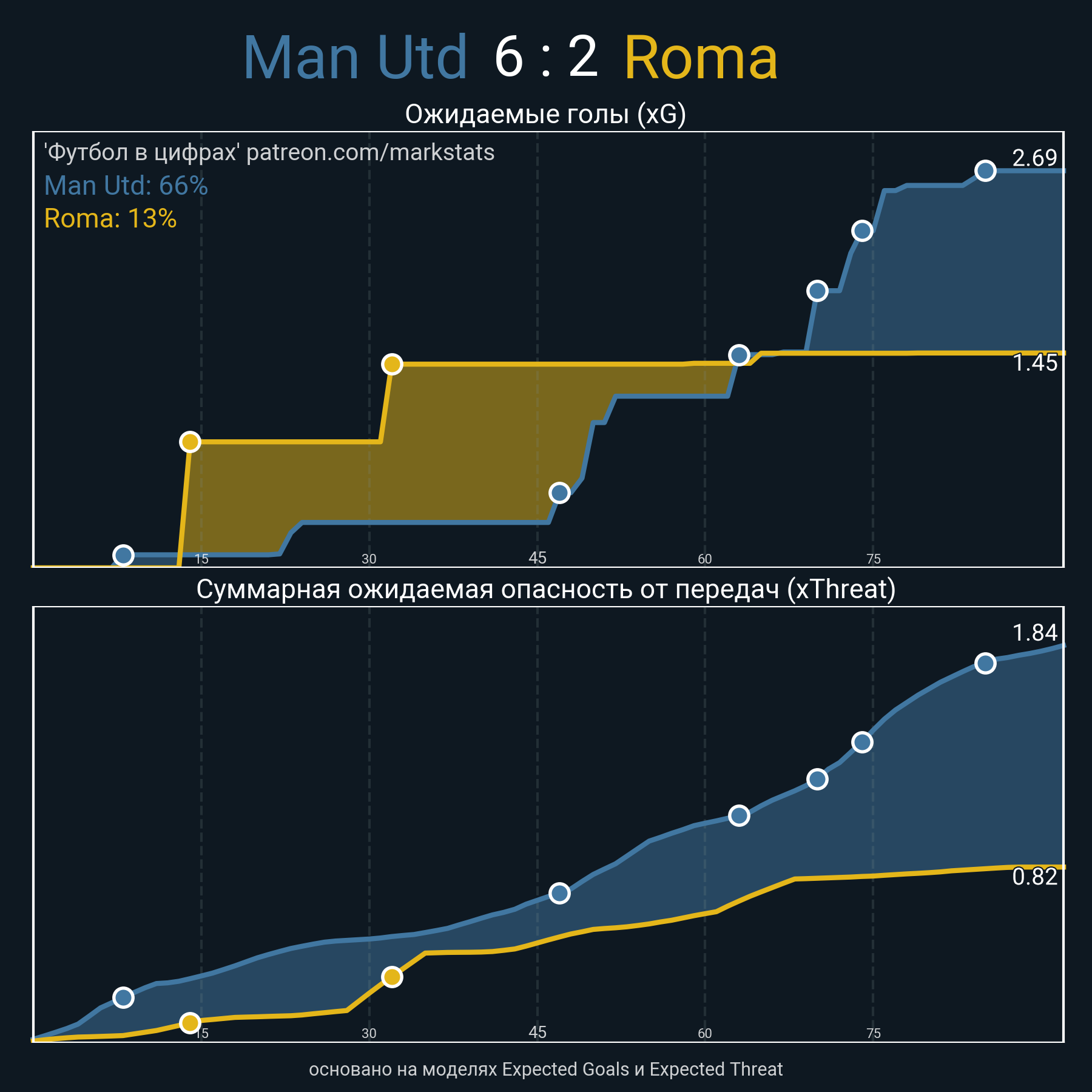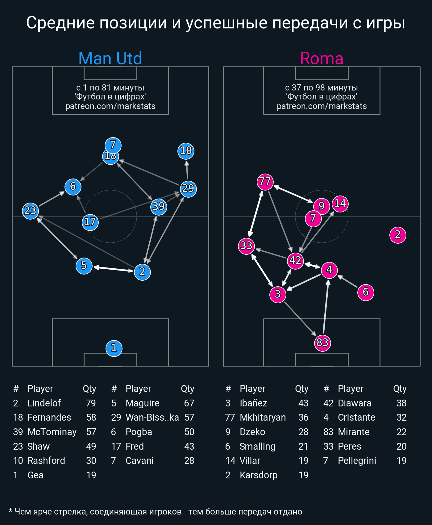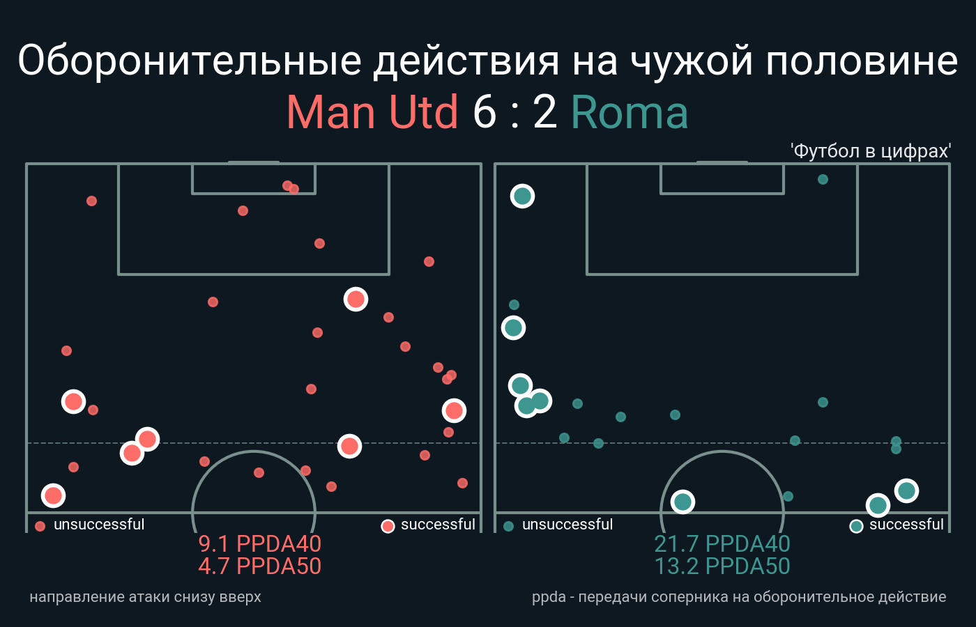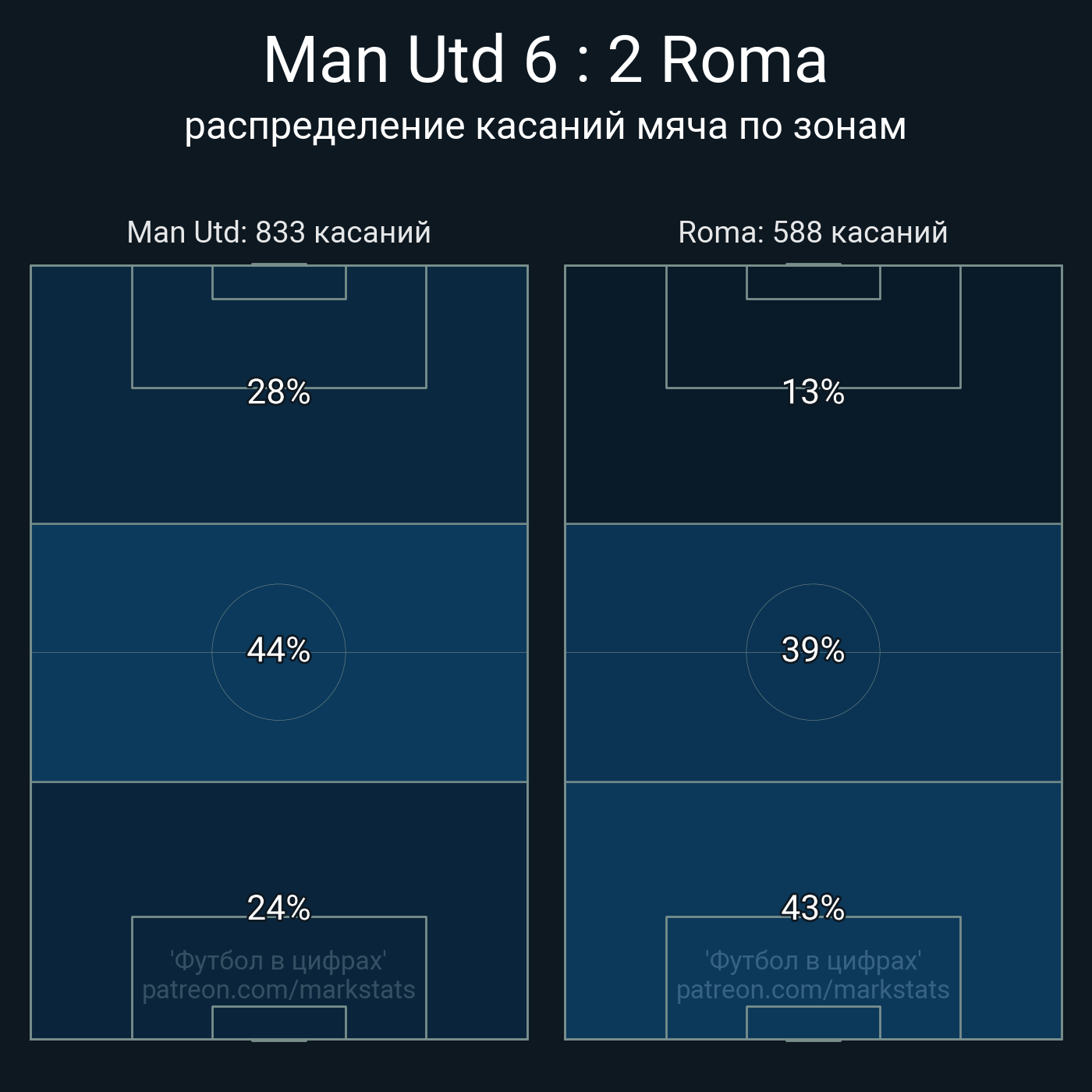 Футбол в цифрахСтатистика матча Man Utd - Roma