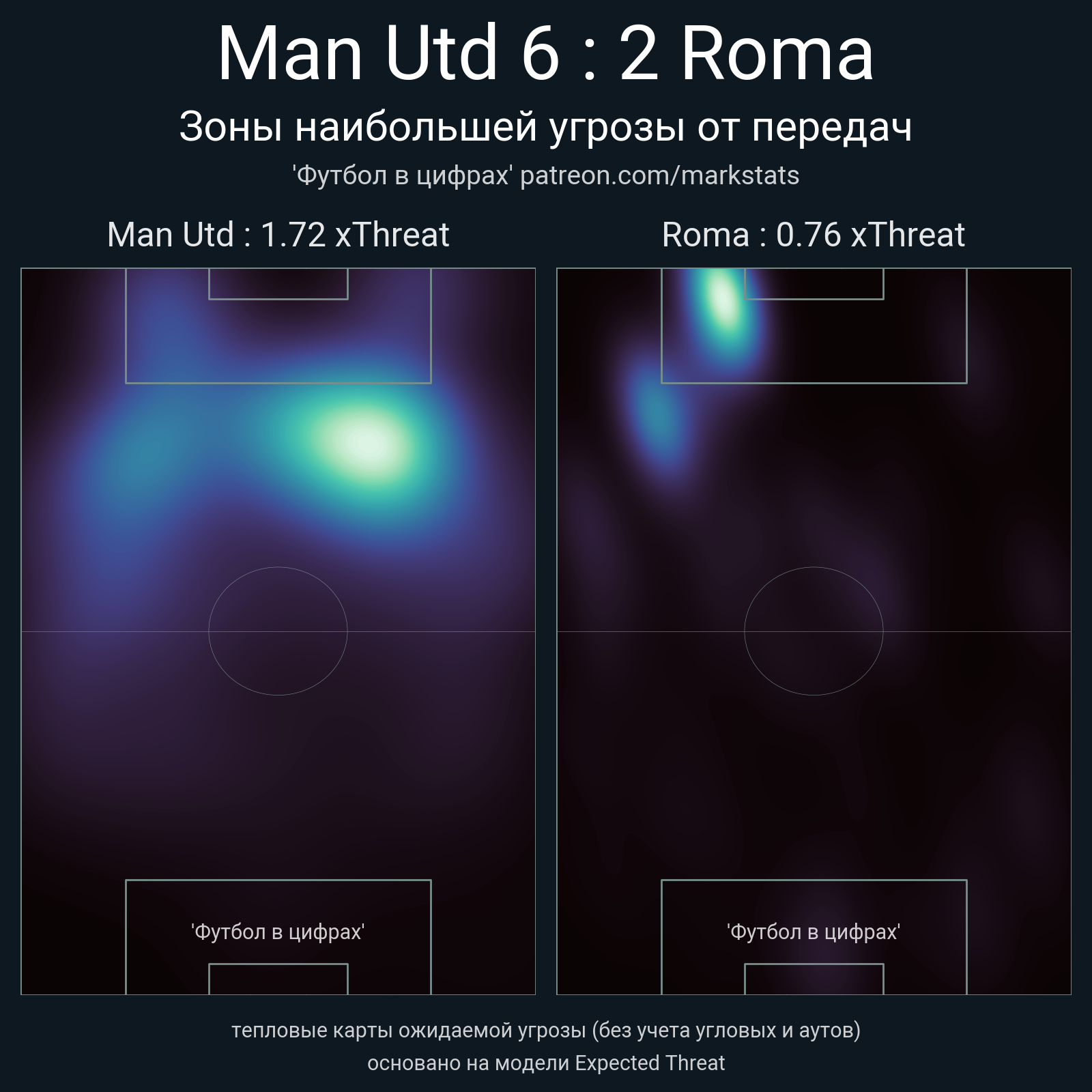 ▪ xThreat без учета угловых: 1.72 - 0.76