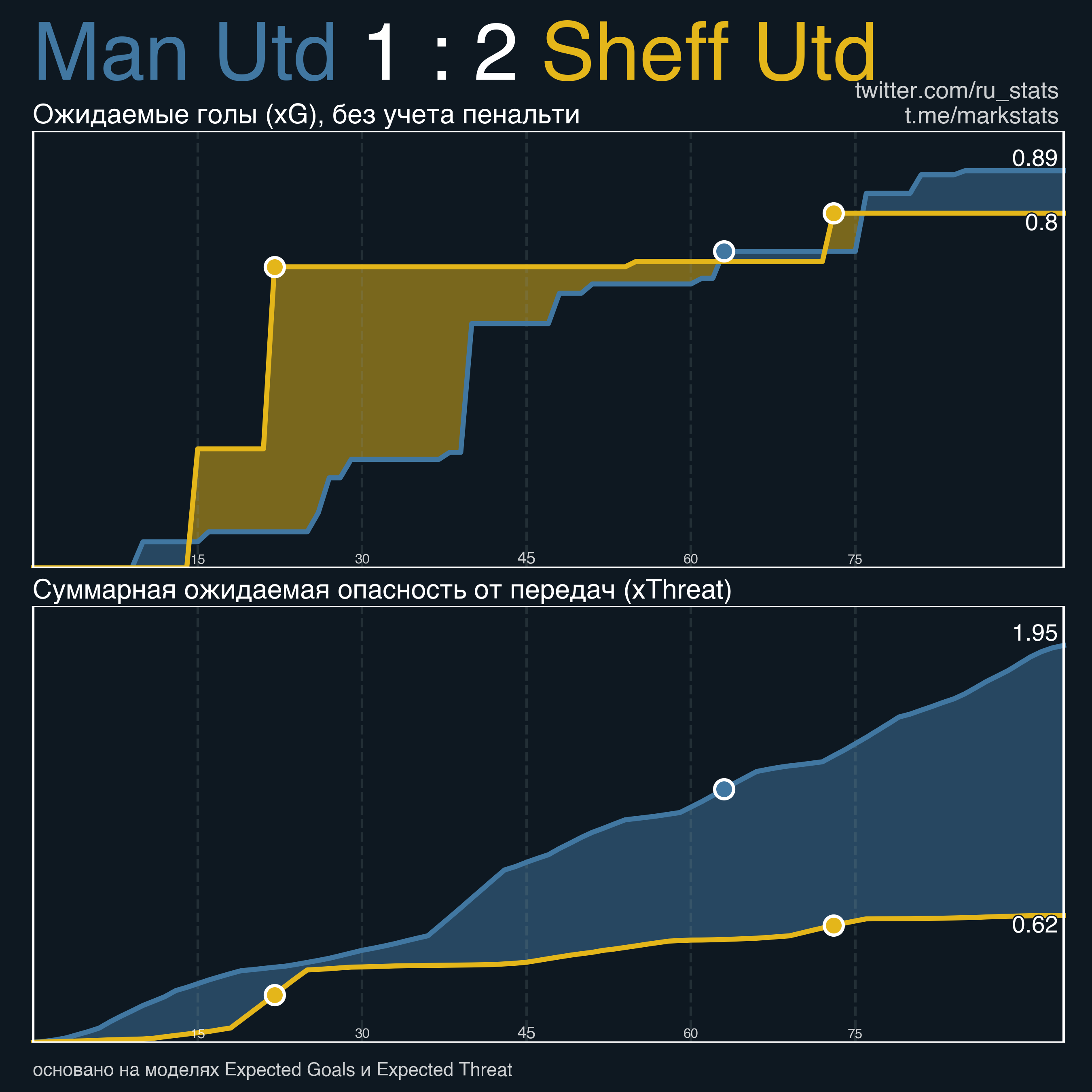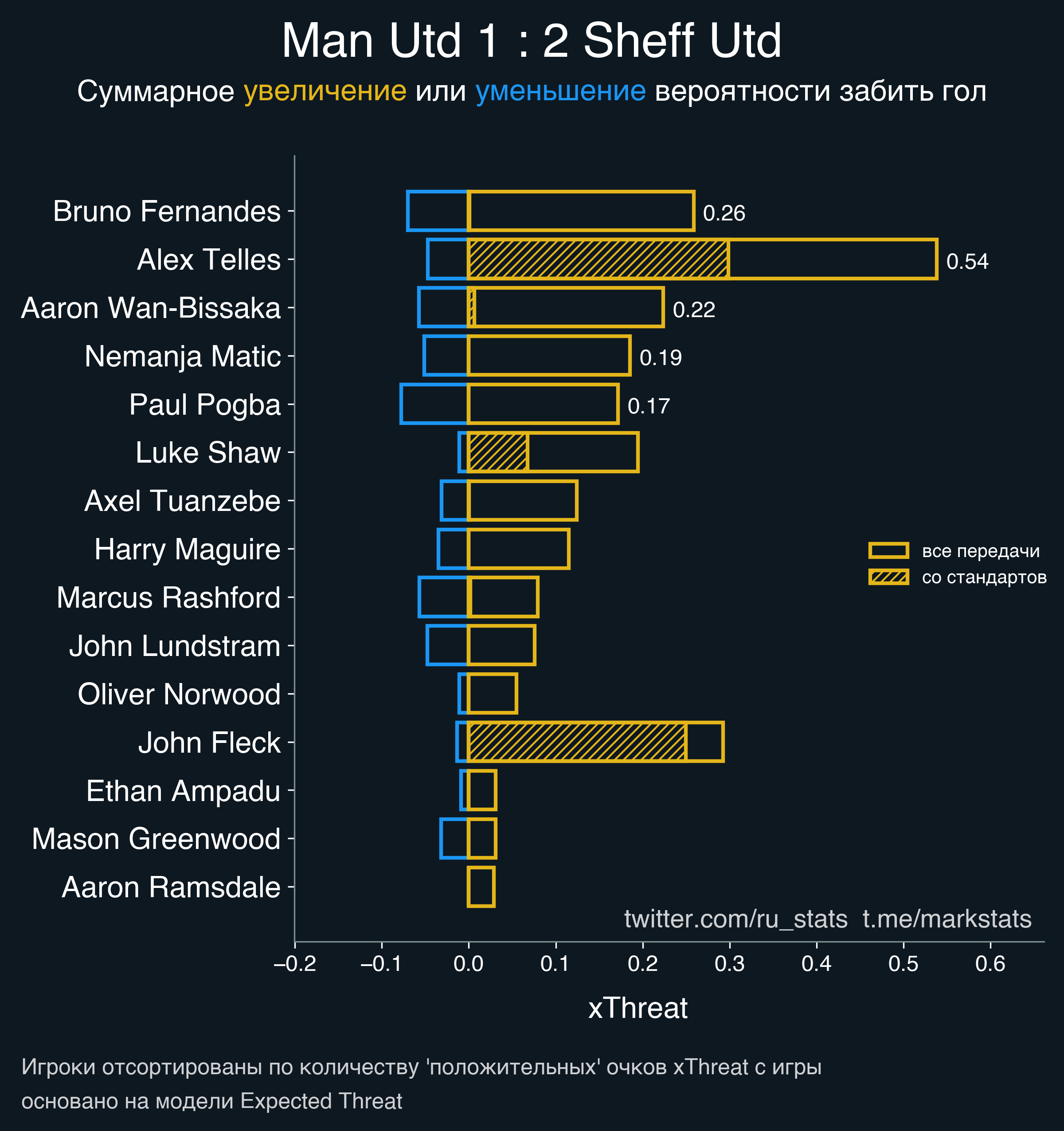 ▪ Ожидаемая опасность передач (xThreat): 1.97 - 0.62