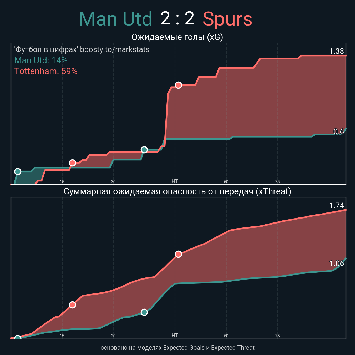 Ожидаемые голы (NPxG): 0.6 - 1.38