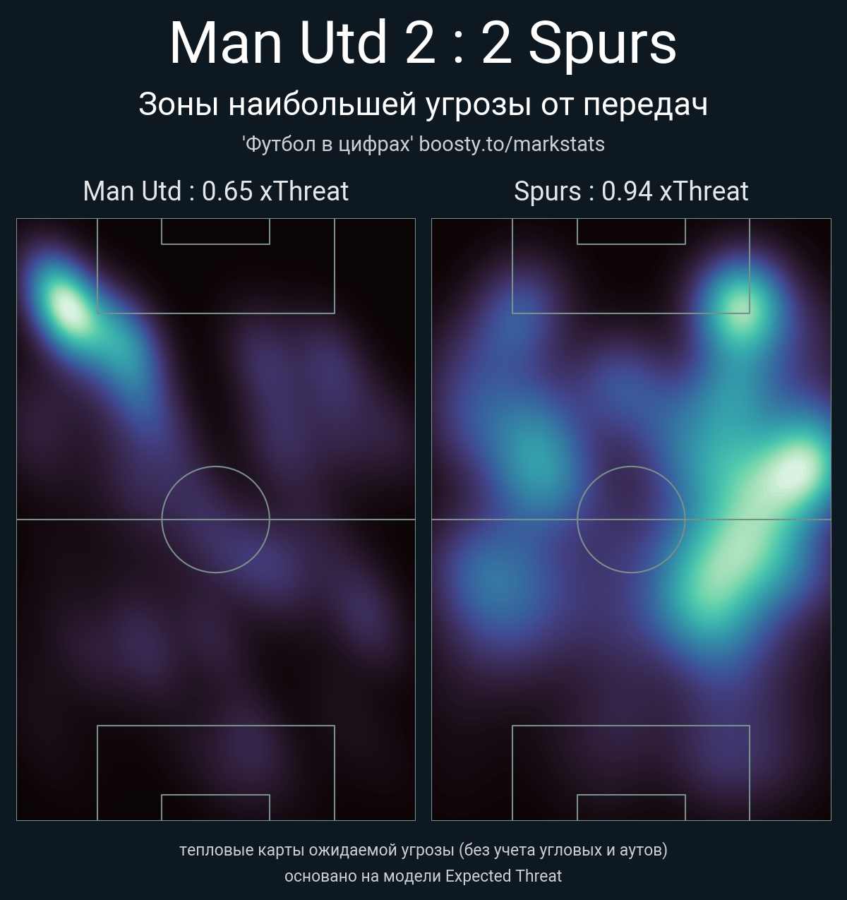 xThreat без учета угловых: 0.65 - 0.94